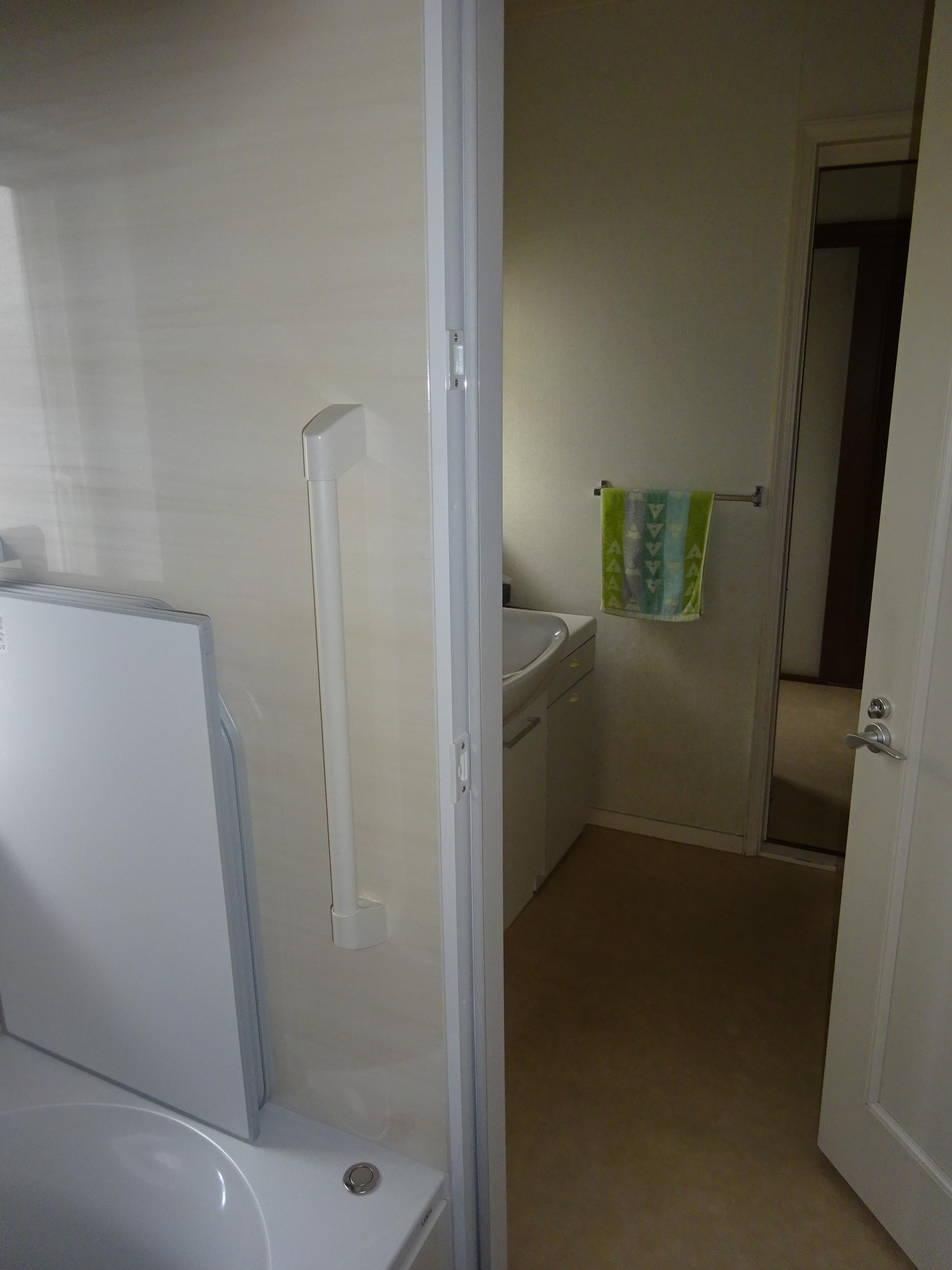 高齢のお客様からのご要望で、安心で温かい浴室に改装したいとのご要望でした 入り口の段差解消はもちろん、浴槽へのまたぎこみの際にも安心出来るように 浴槽の高さや手すりなどにも配慮いたしました