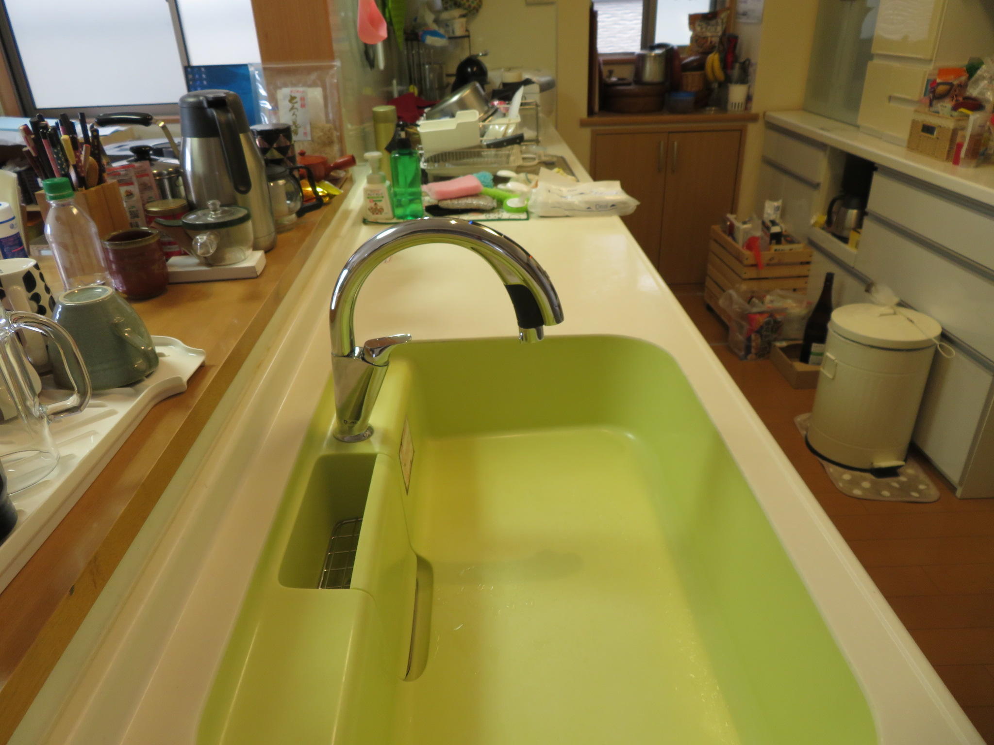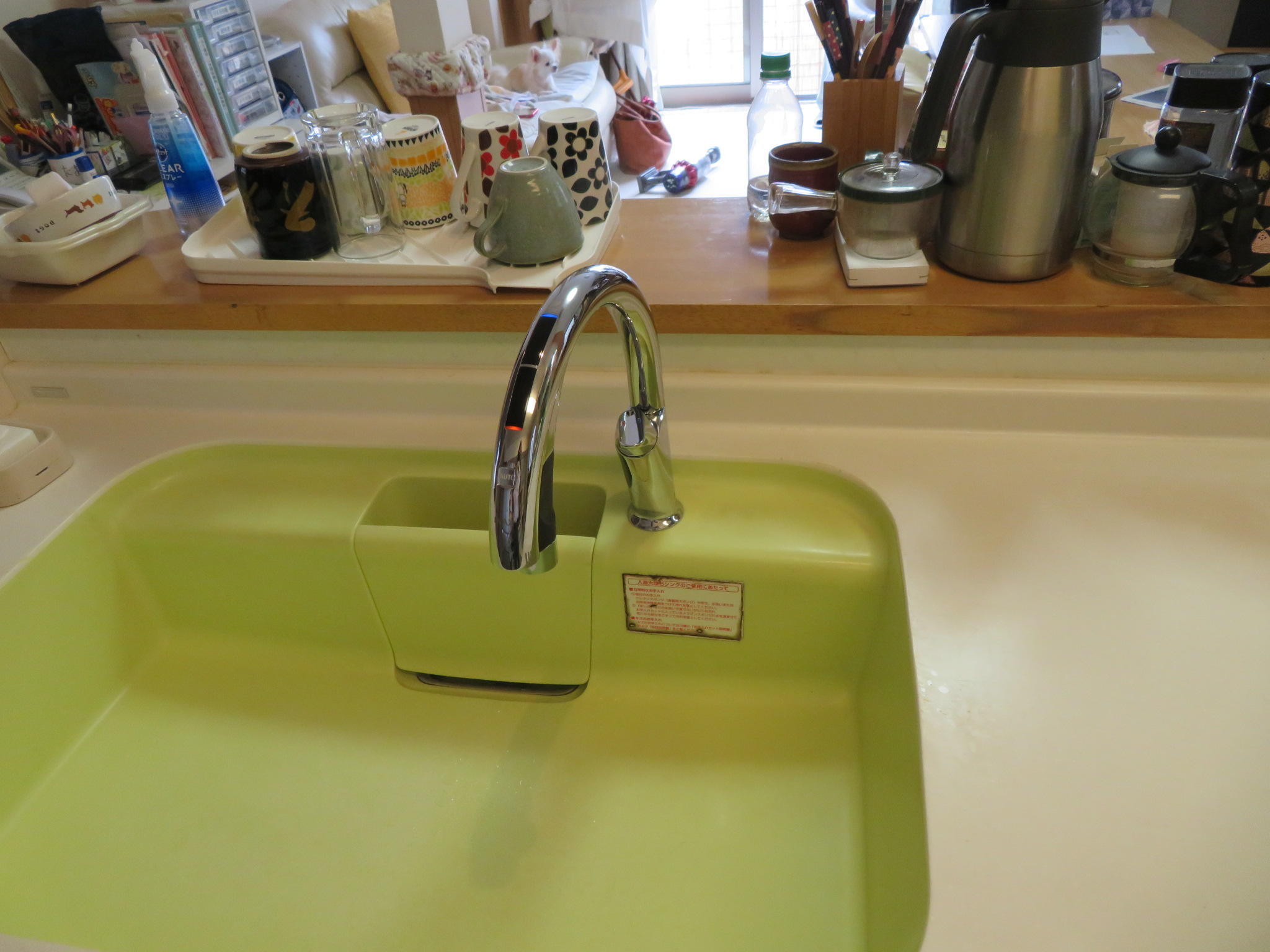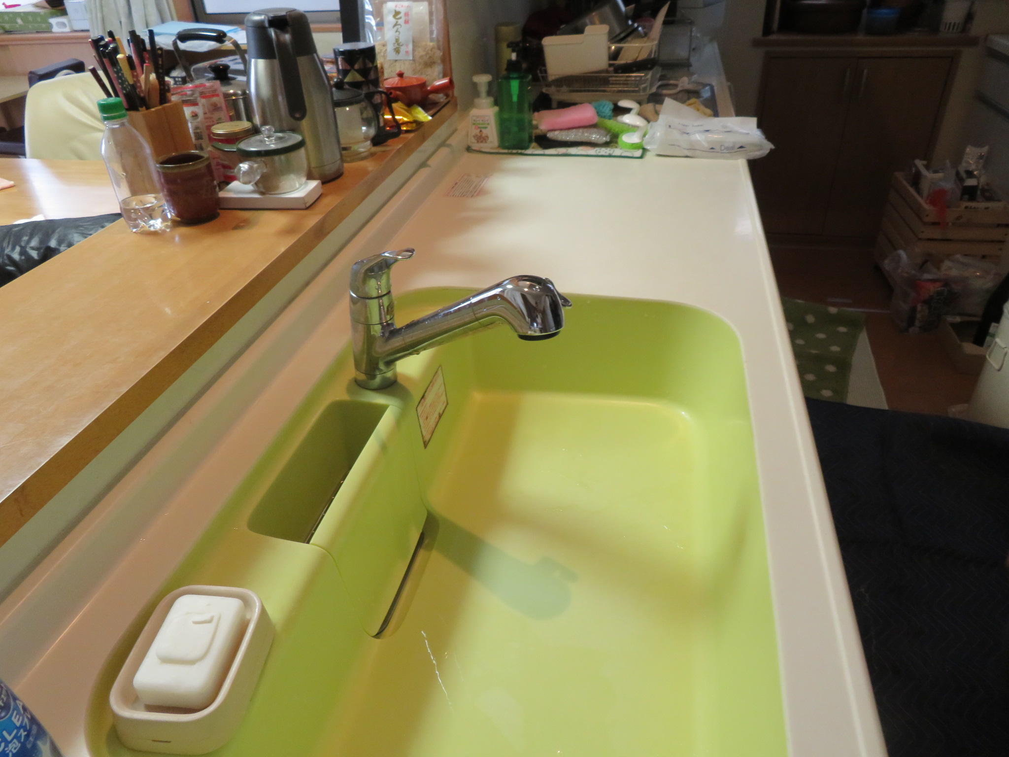 既存オールインワン浄水栓を使っていたが、吐水部分の水キレが悪くなり交換を検討。息子様のご自宅で自動水栓を使用しており、使い易そうで汚れなさそうなところと水栓に触れないで料理できる点はコロナ対策にもなるので水栓交換を決めて頂きました。