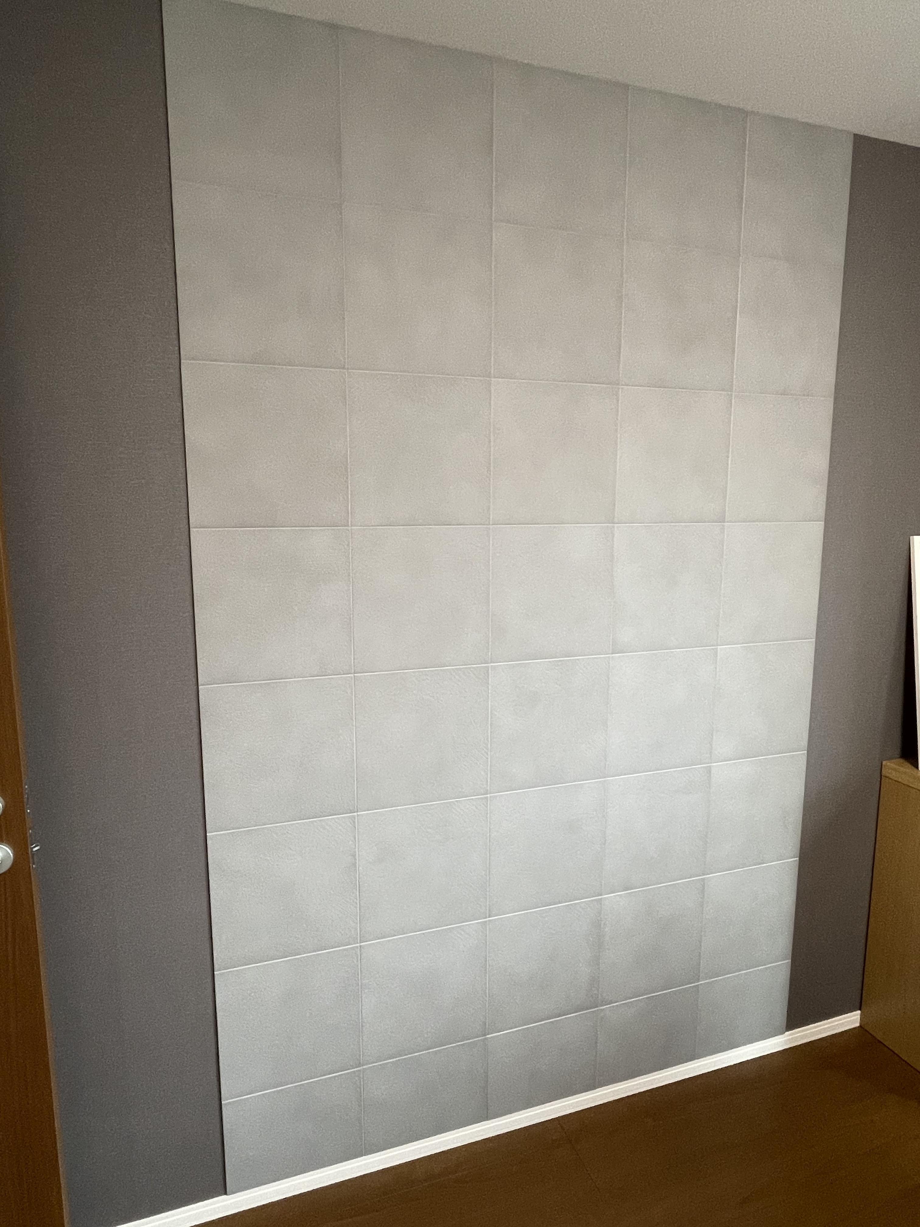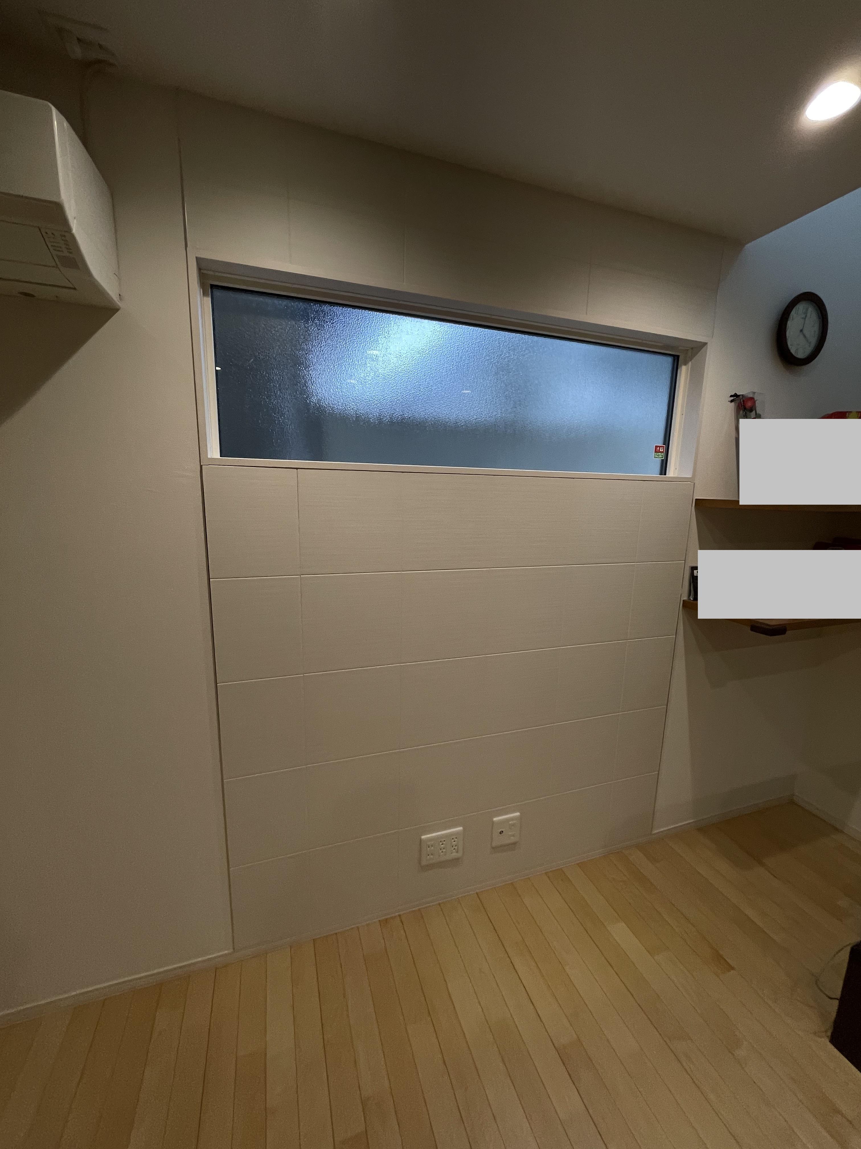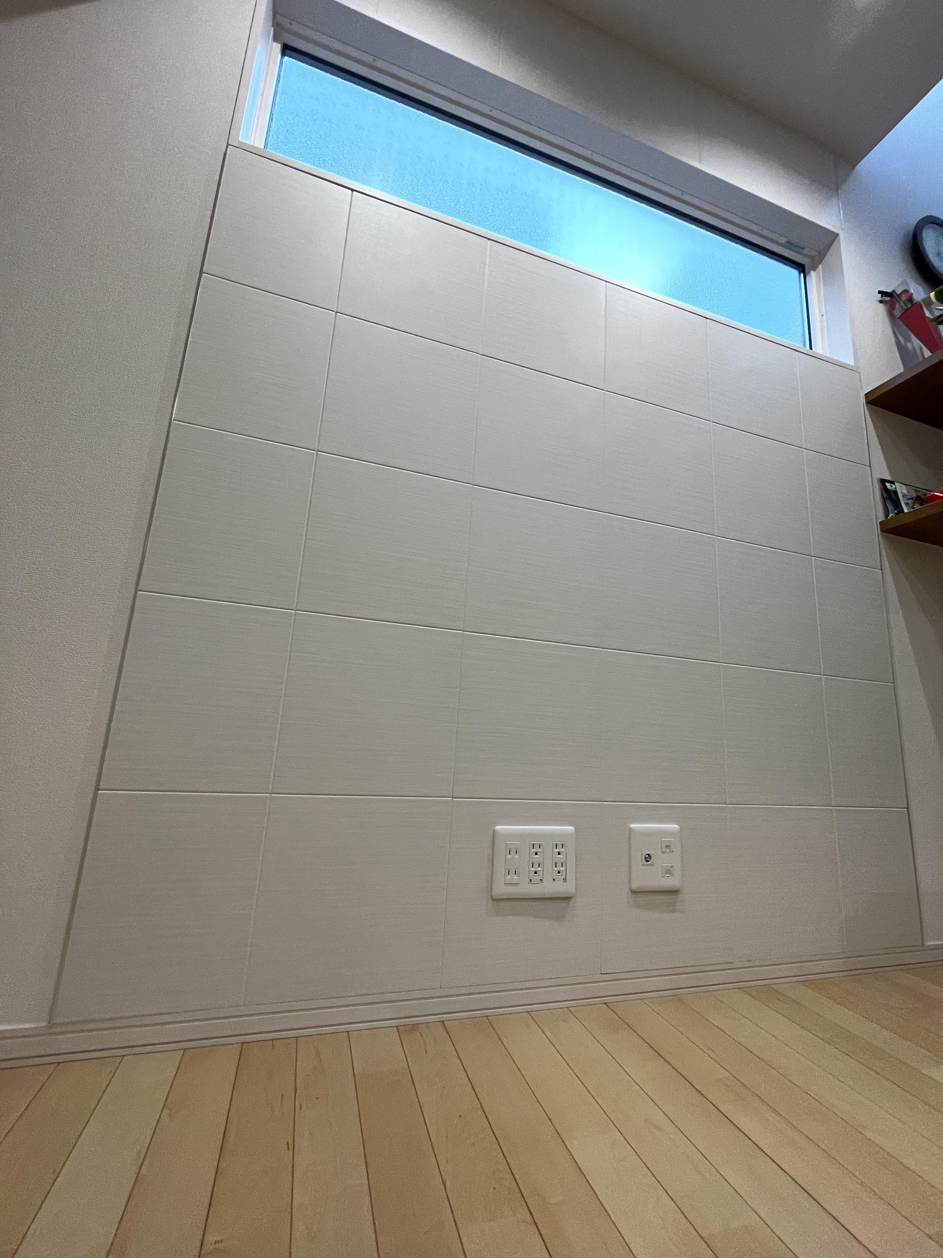 「お部屋の湿気が高く結露もする」というお悩みからエコカラットの施工をさせて頂きました。エコカラットの調湿性能は珪藻土の約6倍あると言われています。他にも脱臭効果やデザインも豊富でいい事づくめの商品です。