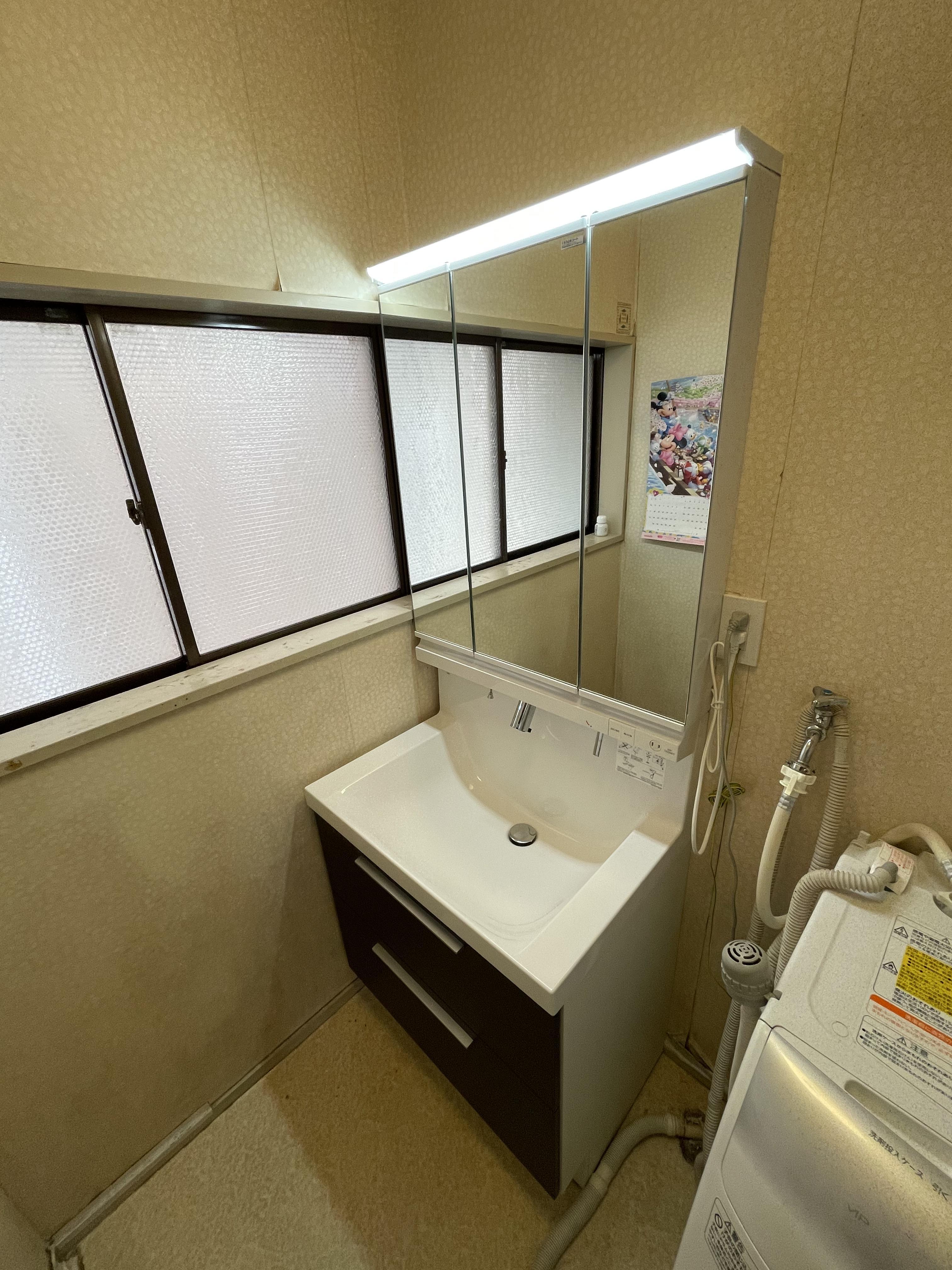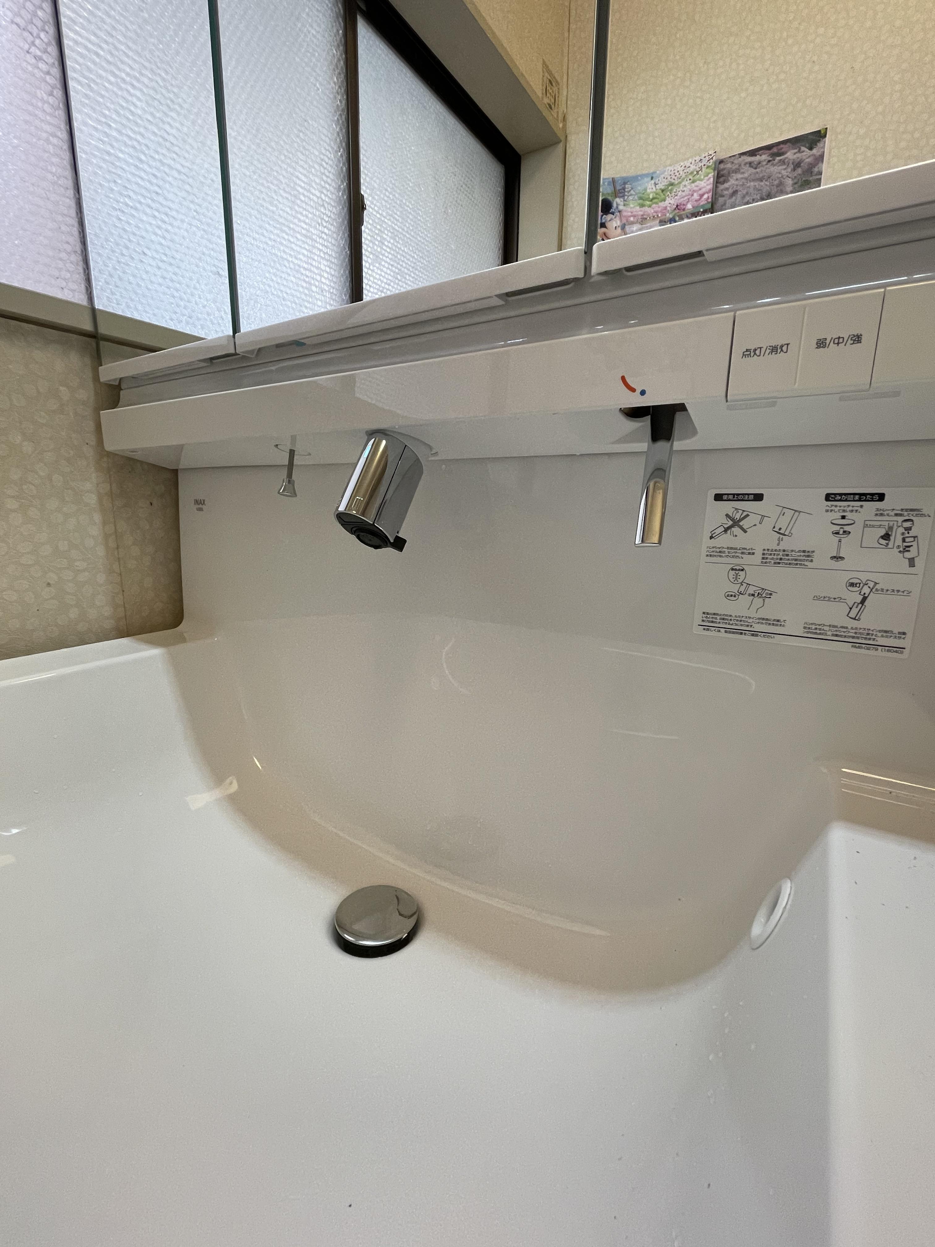 洗面化粧台【L.C.】をご採用頂きました。今回はさらにタッチレス水栓ナビッシュ搭載なので手を差し出すだけでセンサーが反応し、自動で水が出てきます。水滴が溜まらないのでお手入れも楽々です。