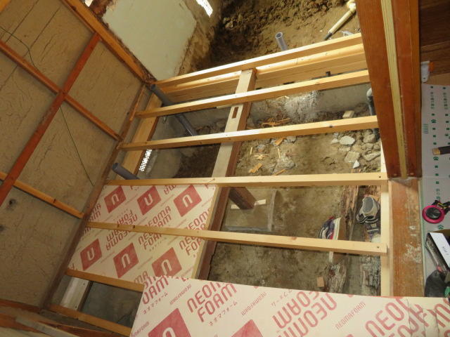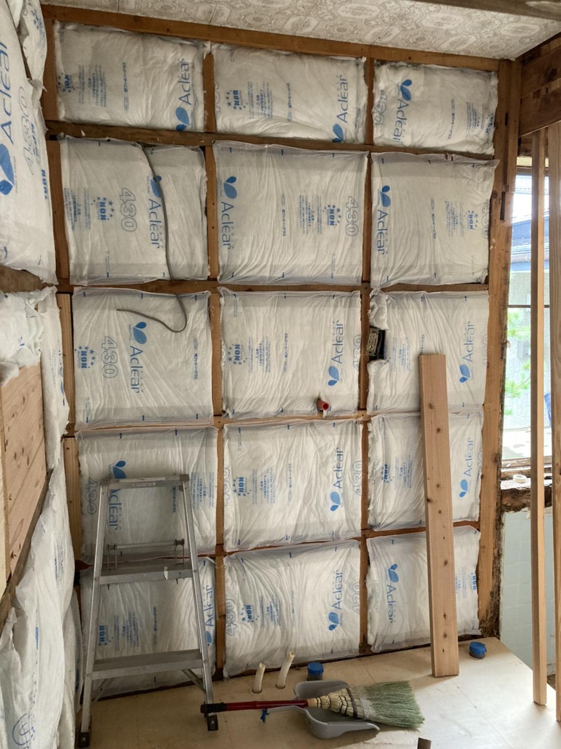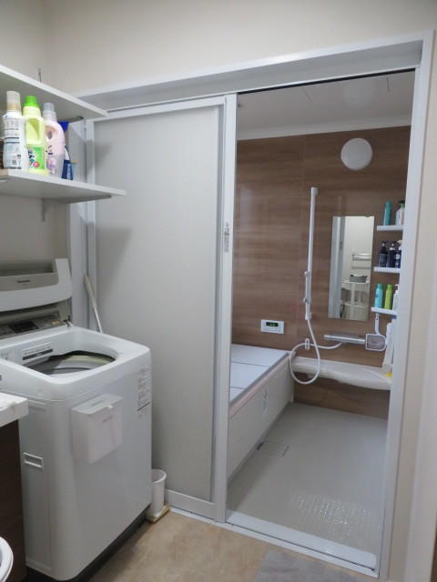 築40年 浴室・脱衣室はとても寒いし、タイルのお掃除が大変。またご高齢のお母さまに快適な浴室を作りたいと要望がありました。断熱性の高いユニットバスへ交換しさらに窓は内窓(インプラス)設置、浴室外壁面は断熱材充填。また、脱衣室も壁・床・天井を断熱材で丸ごと保温。とても暖かい浴室・洗面脱衣室になりました。