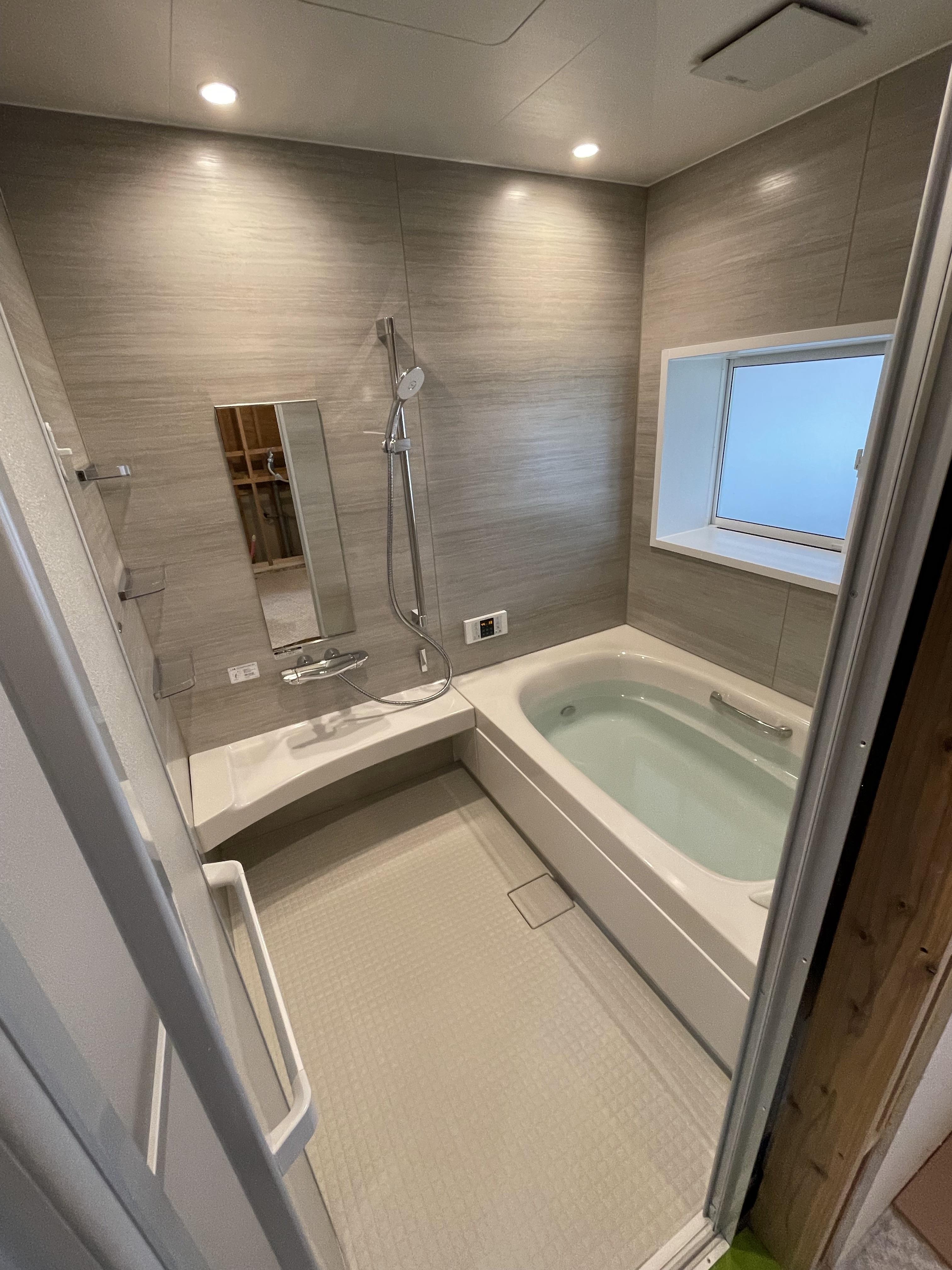 タイルのお風呂からユニットバスへのリフォームを行いました。 寒い、滑りやすい、お掃除が大変なタイルのお風呂に比べて スパージュはあたたかい、キレイ、安心の基本機能に加えて リラックスできるお風呂です。 「肩湯」「肩ほぐし湯」「腰ほぐし湯」の力で癒しを体感してみてください。 今回はお風呂だけでなく窓も交換したことでさらにあったかいお風呂になりました。