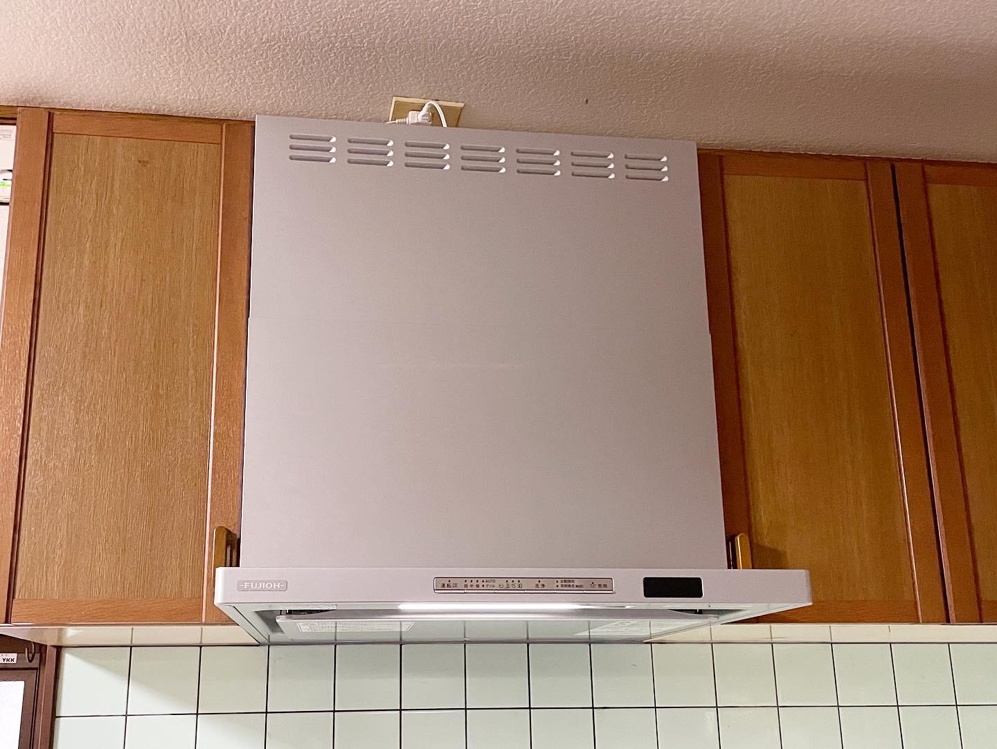 レンジフードの交換工事をさせて頂きました。お手入れ性能を重視される方が多いレンジフードですが今回の商品は内部を一つで自動洗浄してくれる機能付きです。 面倒なお手入れも楽々です。