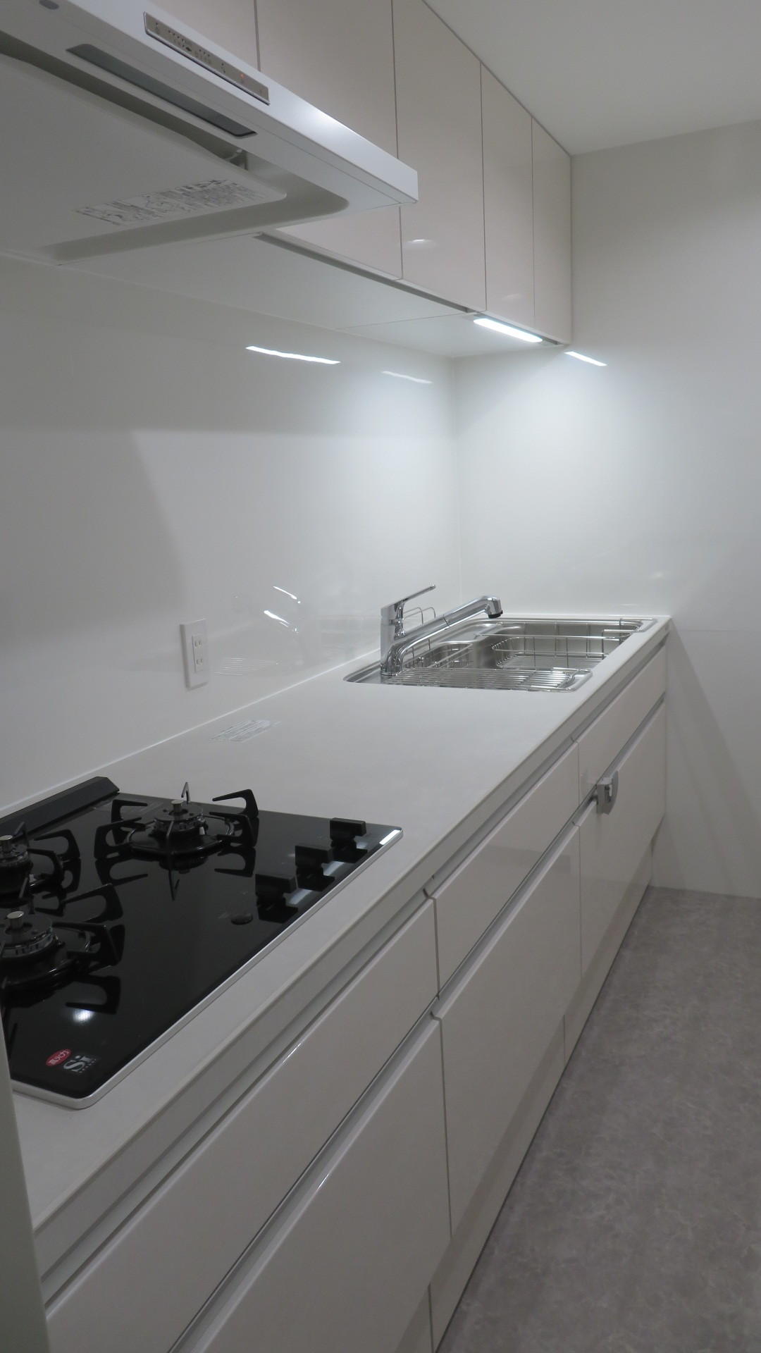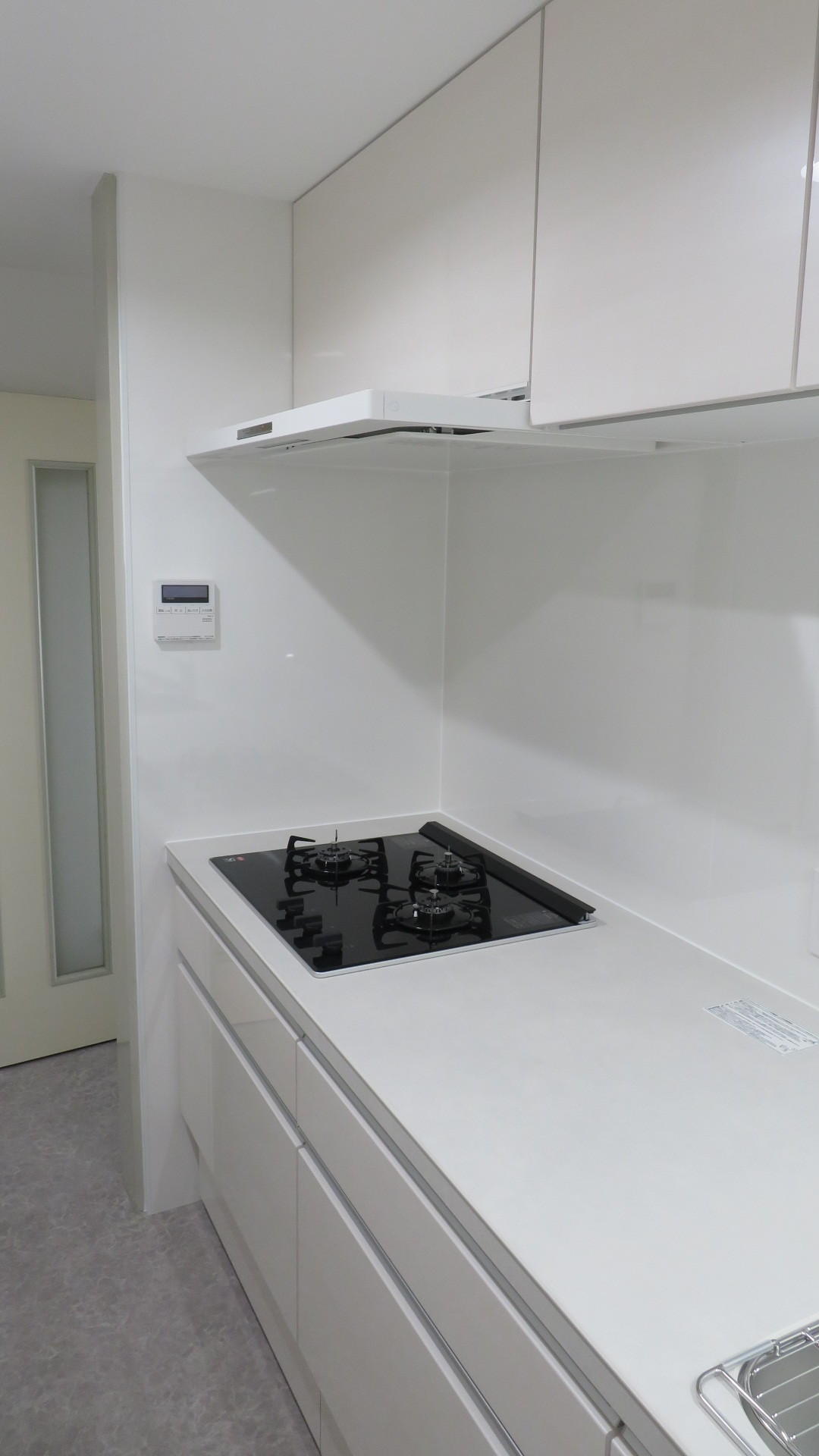 キッチン全体を白を基調としたとても明るいキッチンスペースに大変身。