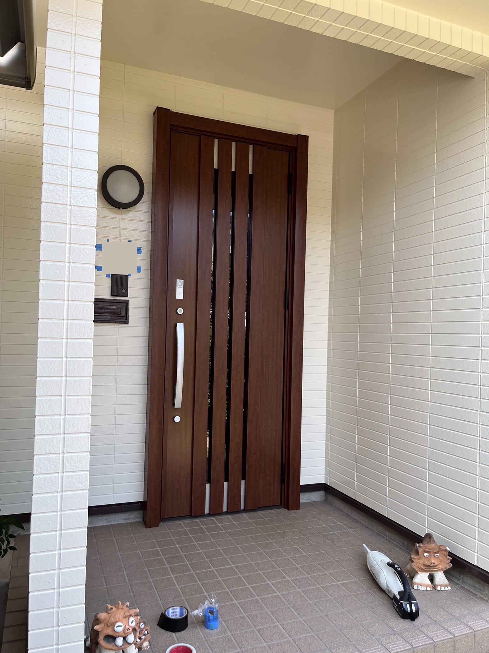 玄関ドアの交換工事を行いました。 エントリーシステム(鍵)をスマートロックシステム仕様にしたので鍵を出さなくてもタッチするだけ、カードをかざすだけで楽々施解錠ができます。