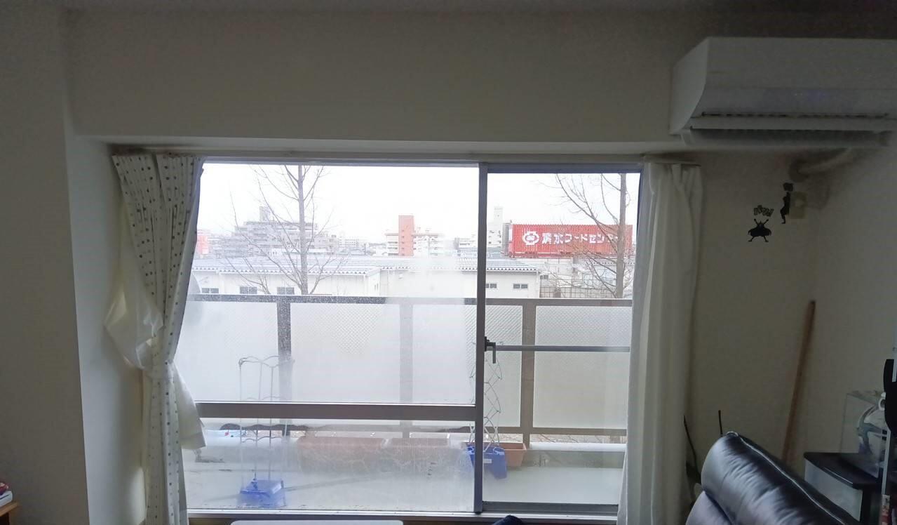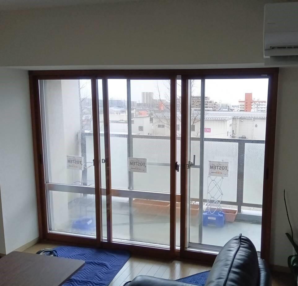 マンションの窓が大きく冬場の寒さ、結露が気になるお客様に内窓を提案しました。