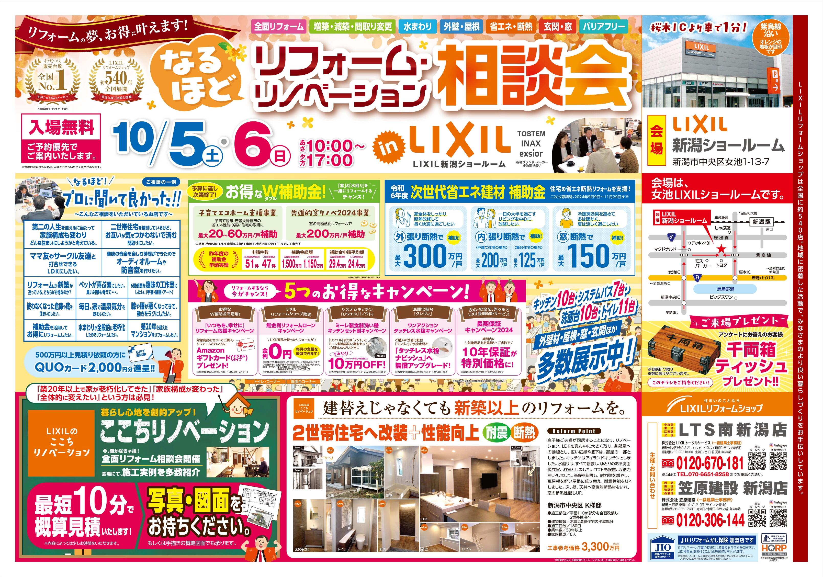 LIXIL新潟ショールーム で10月5日(土)、6日(日)の2日間でリフォームイベント開催する事が決定しました!
