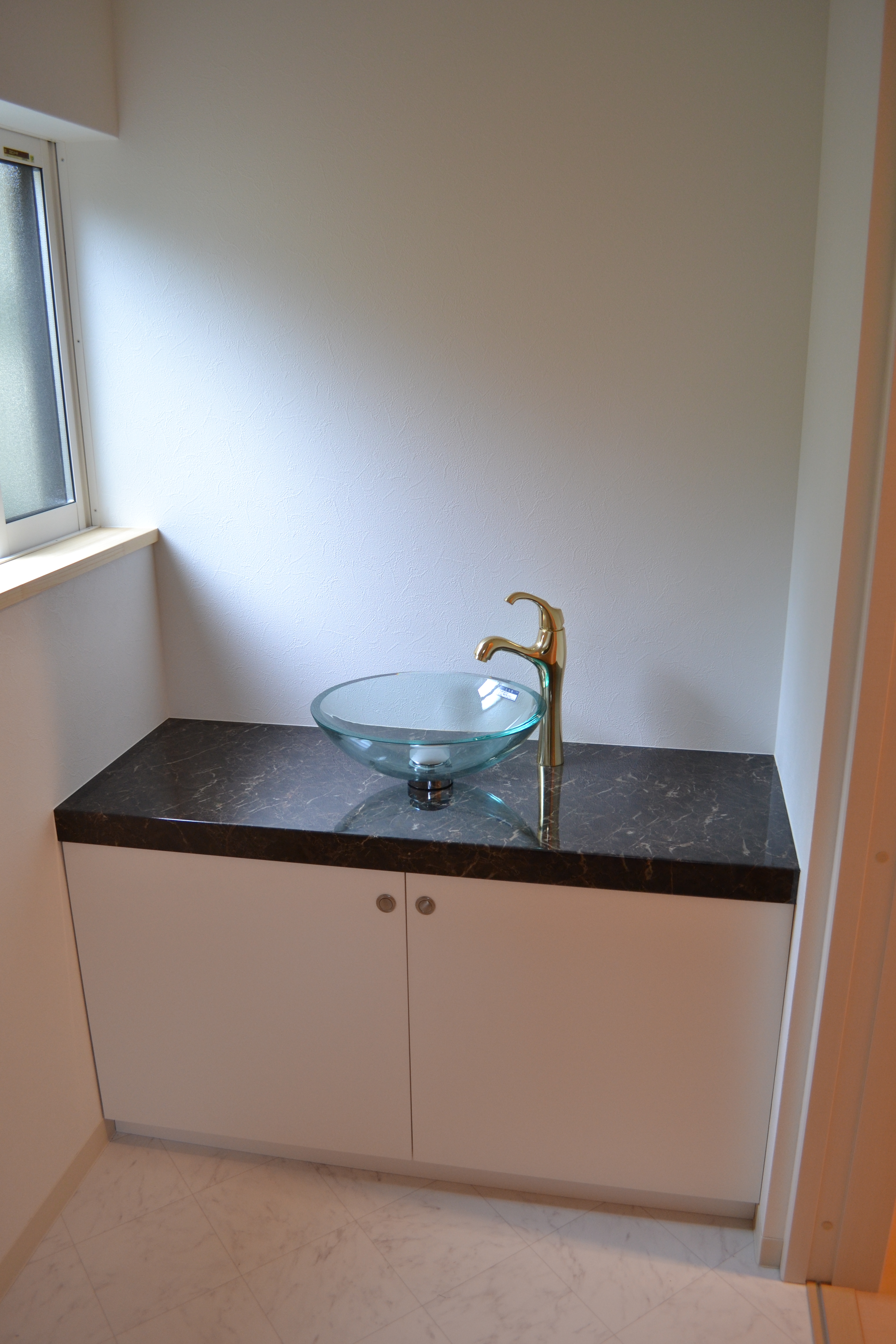 ガラスボウルが魅力的な洗面台