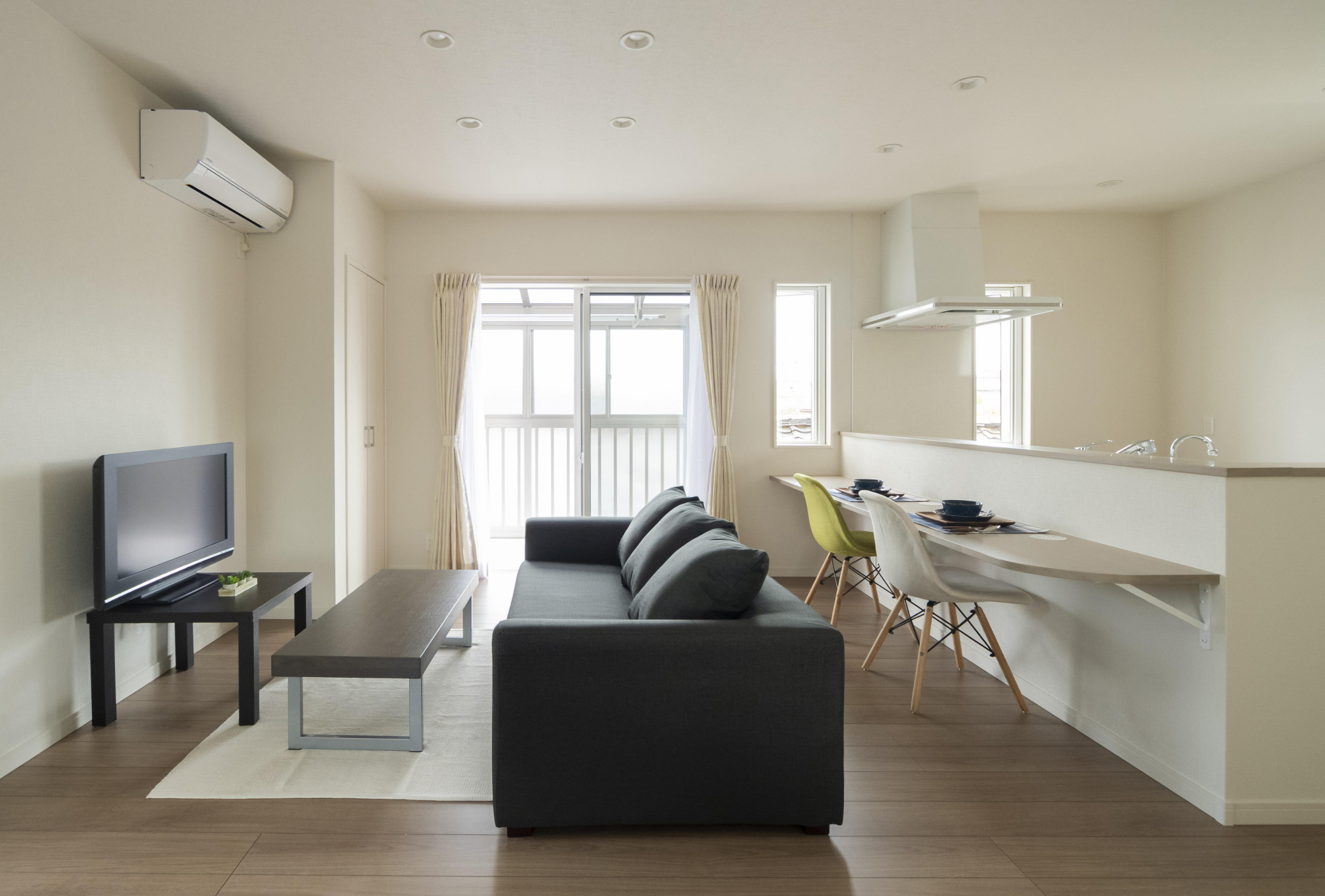 見晴らしがとてもいいお部屋になっています。また白を基調とした壁紙や家具材を使用することで、お部屋を広く見せるように仕上げました。