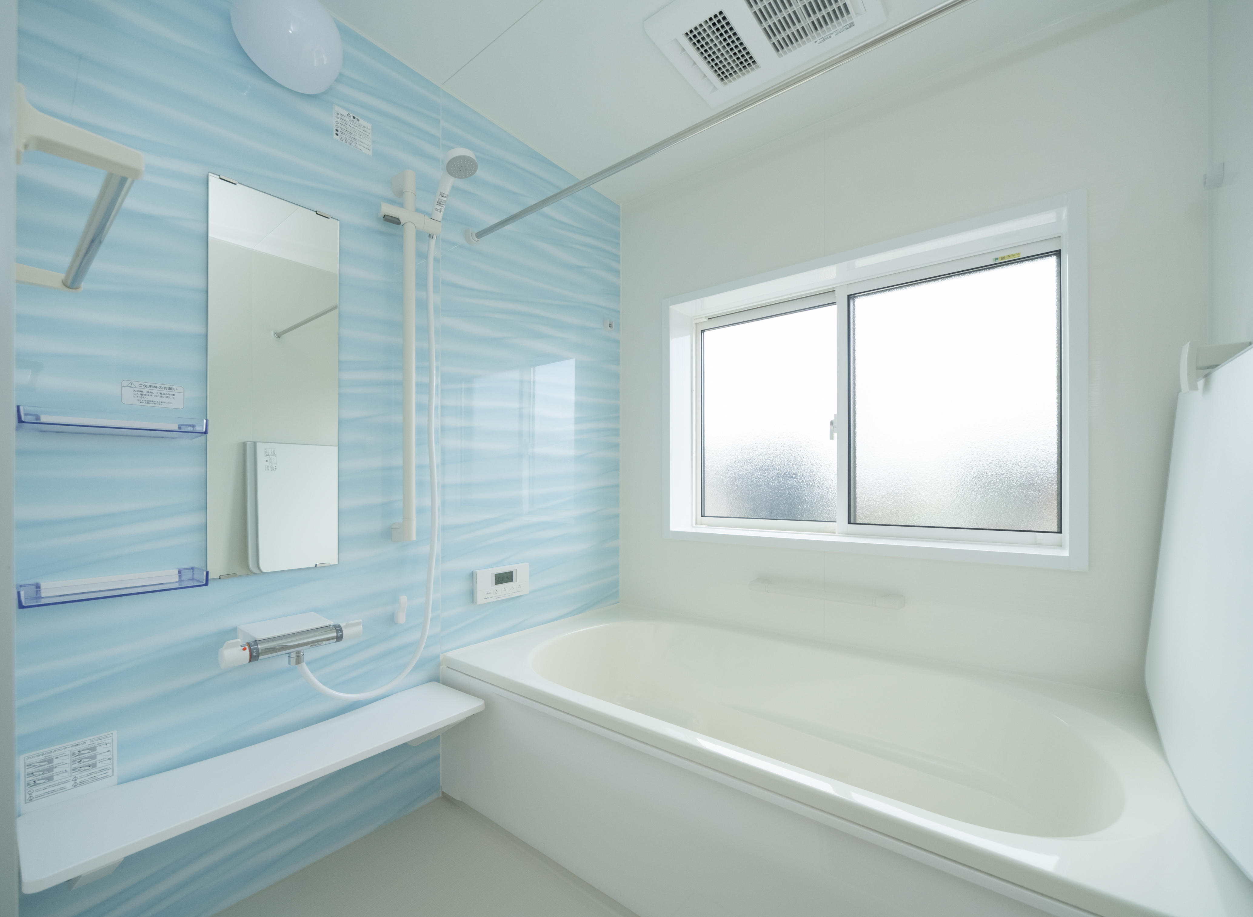 お風呂は一坪サイズで足を延ばして入れる広さになっています。また大きめの窓を使用しているため自然光が入り気持ちのいい空間になっています。