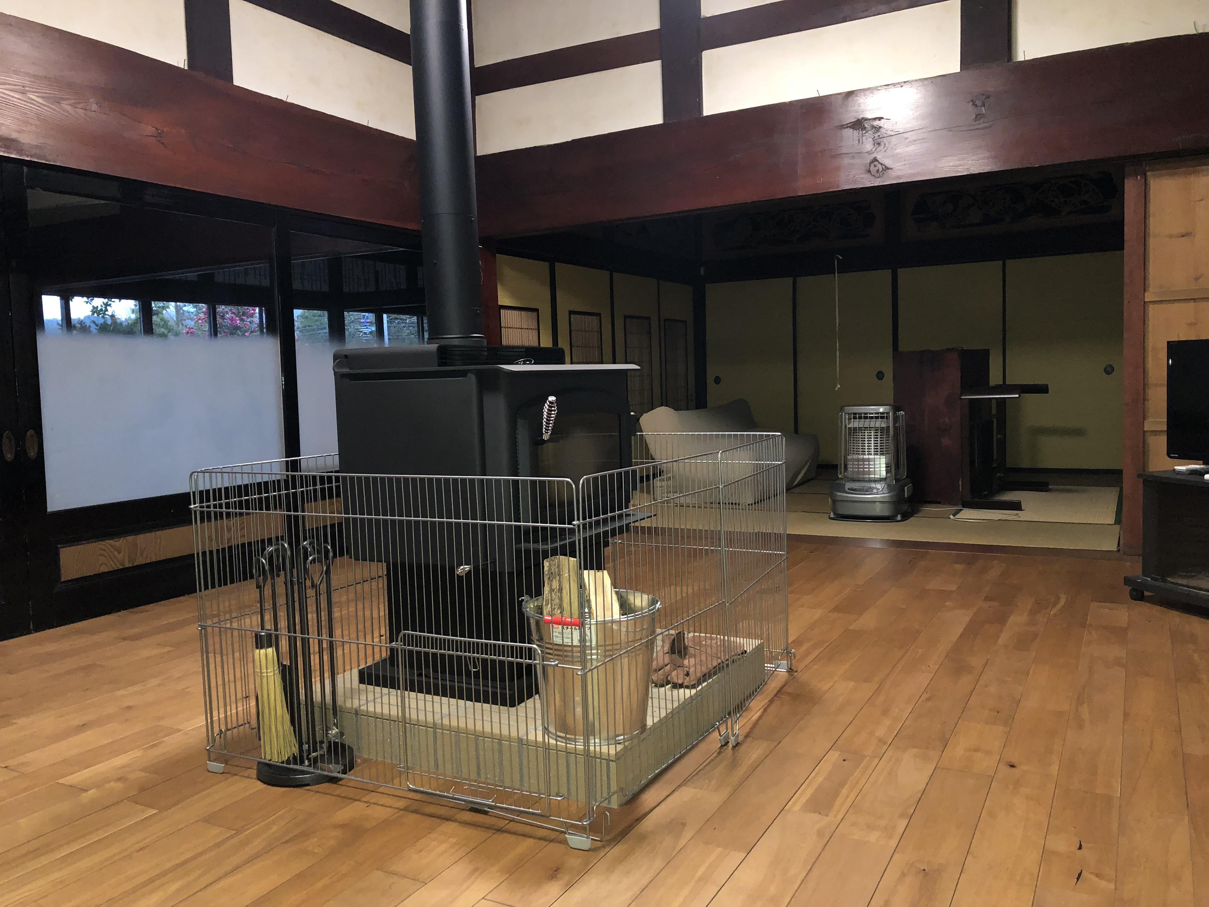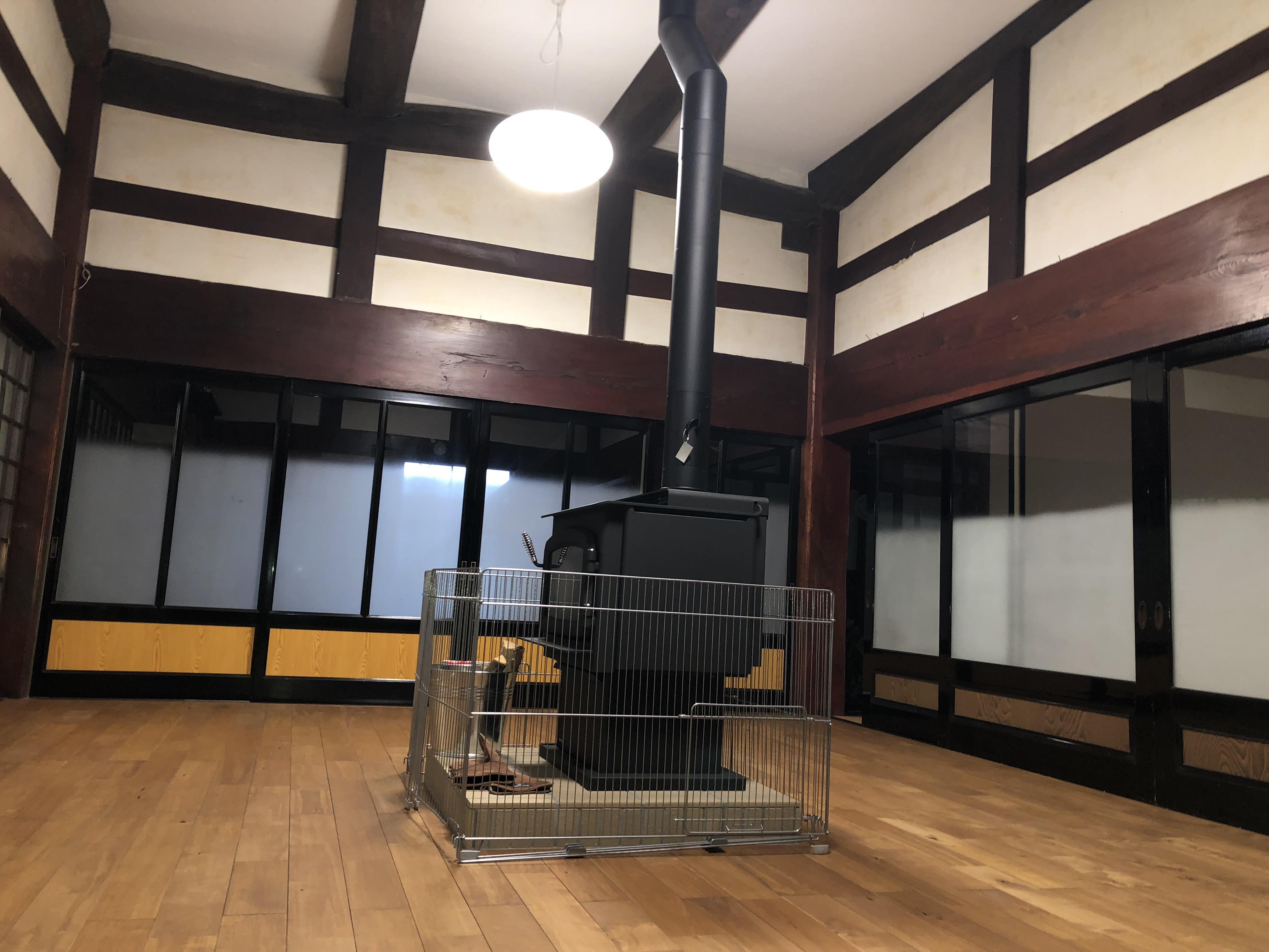 以前は天井が高かったので、低くすることで薪ストーブの熱を逃がしにくく暖かく過ごせるように作りました。
