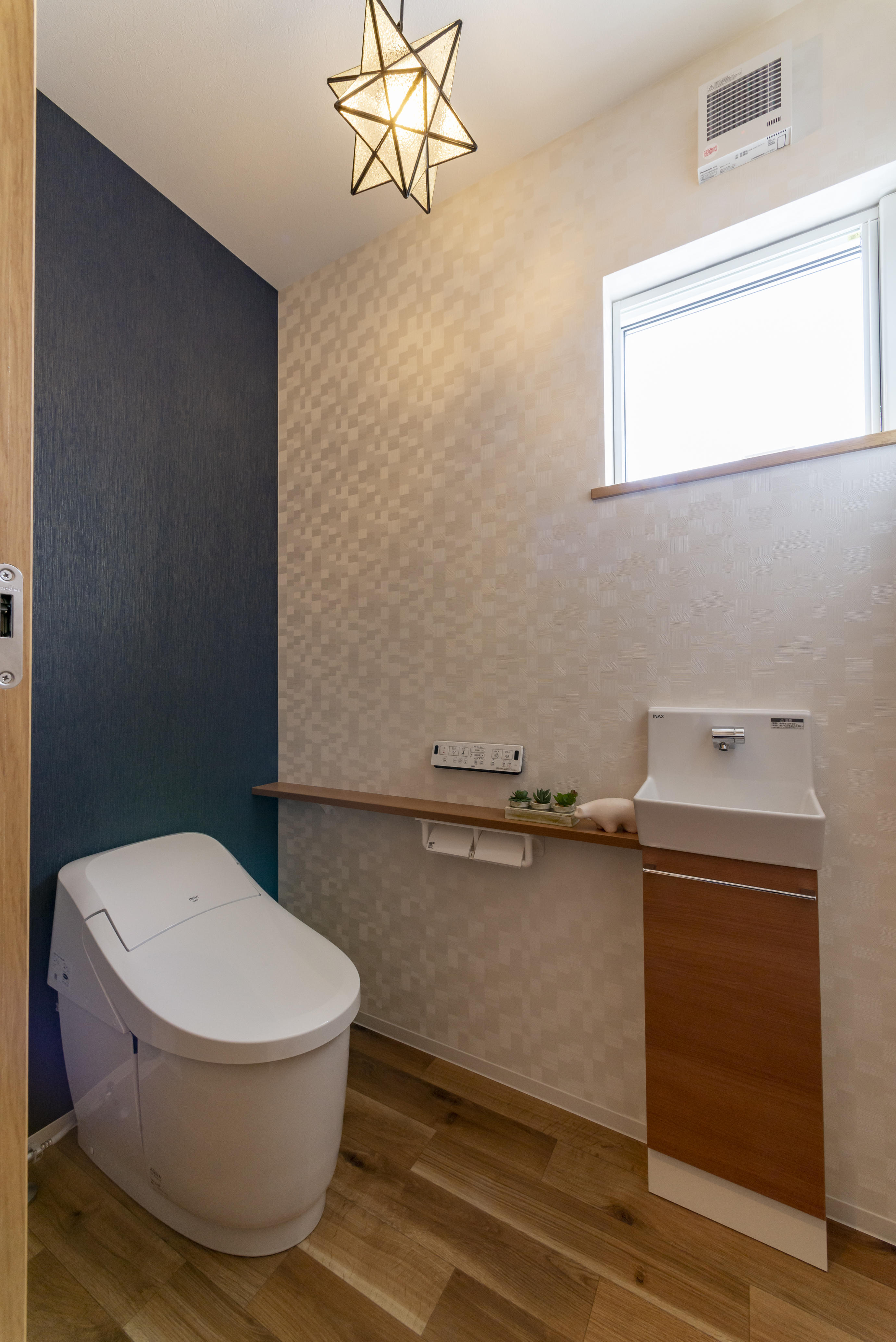 トイレには奥様こだわりの星形照明。照明にあう可愛らしい壁紙にもこだわりました。