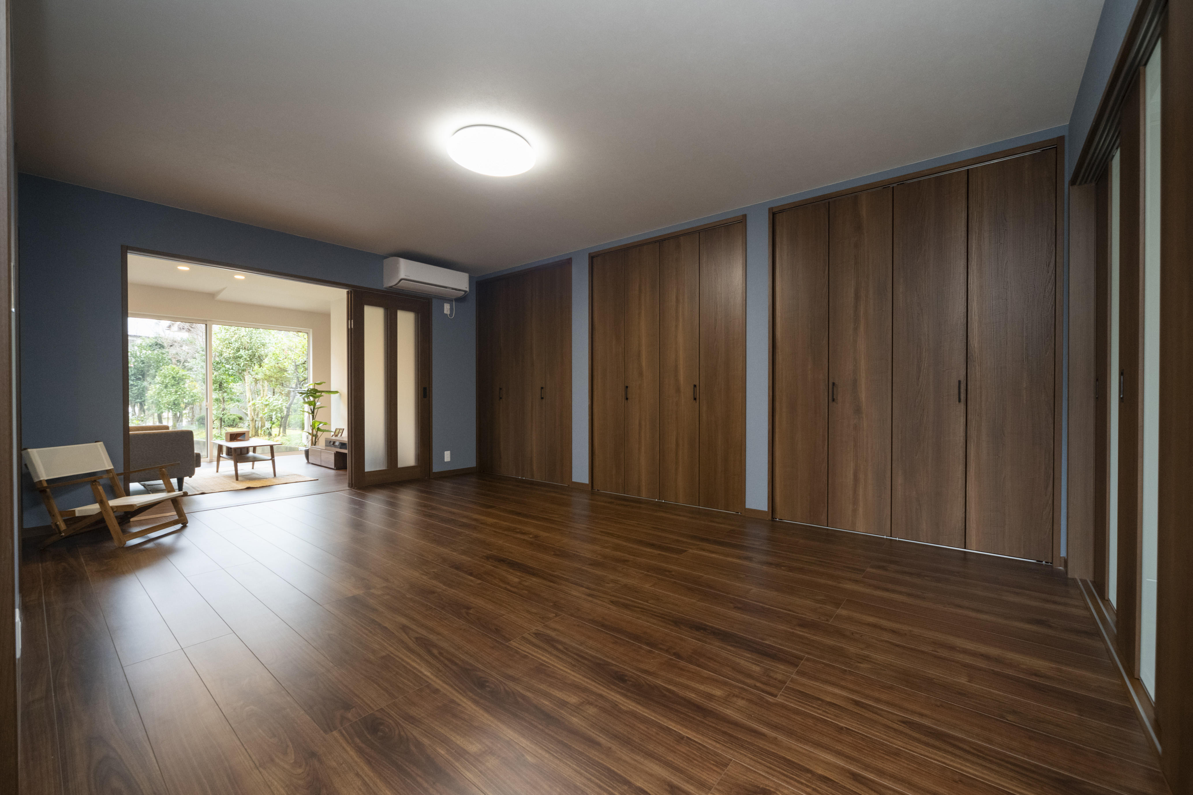 落ち着いた色合いの寝室