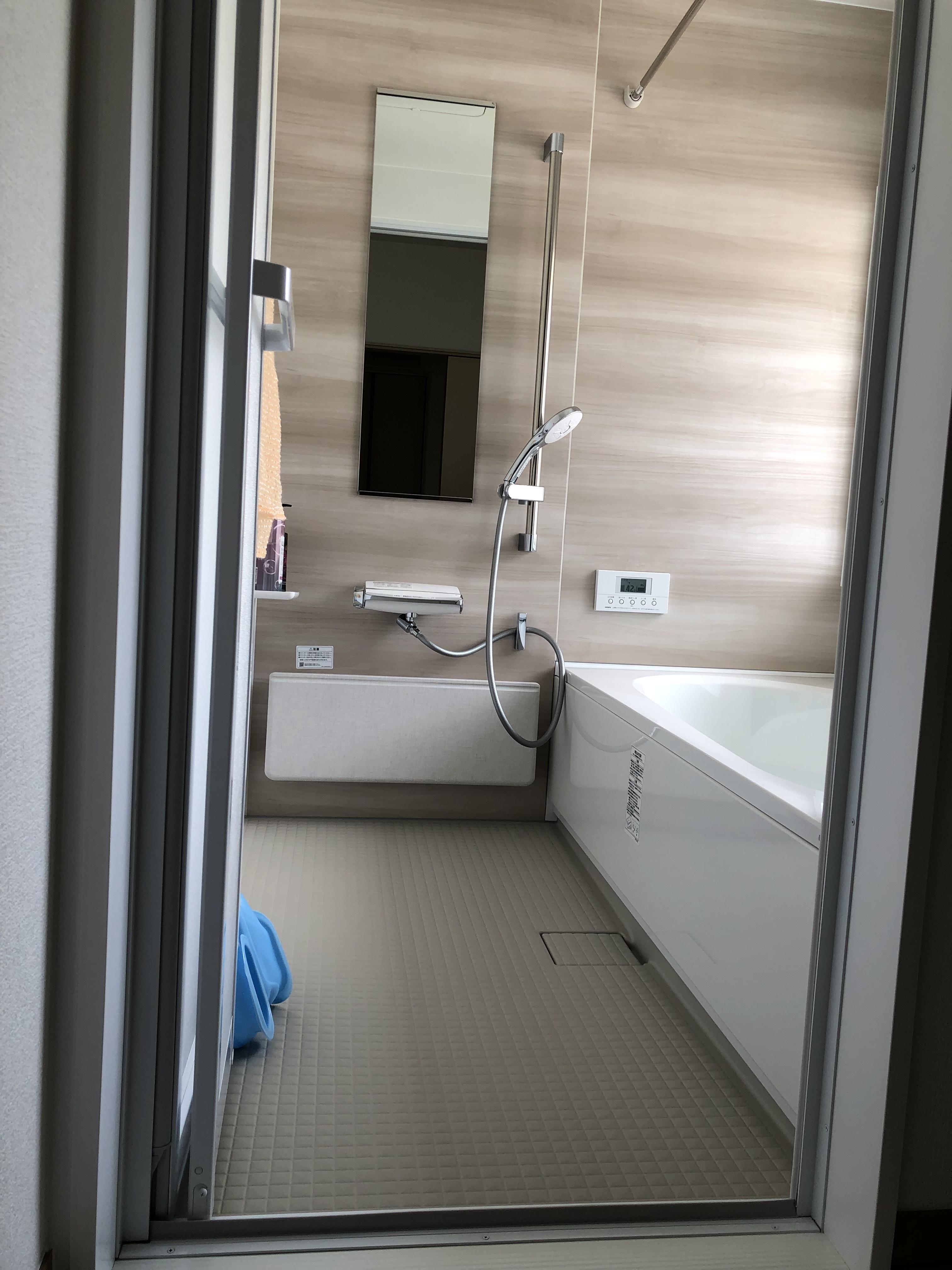 いままで何度もリフォームをご依頼くださったお客様で、老後のために浴室もリフォームしたいとご相談をいただきました。 入口の段差をなくし、暖かく過ごしやすい浴室をご提案しました。 ゆったり入れるように浴槽は以前の広さから1坪サイズに変更しています。