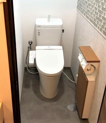 お家で店舗を営んでいるお家のトイレのリフォームです。 設備が古くなり汚れも目立ってきたためリフォームをされたいとのご相談でした。 トイレ内に手洗が無いため、タンクに手洗いがついているタイプをご提案しました。 また、壁紙や床、紙巻き器も新しくし、綺麗で明るいトイレに生まれ変わりました。