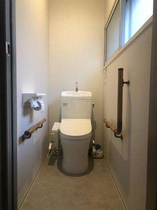 トイレは結露や寒さ対策のために内窓を設置し、手すりを付けてバリアフリーにしました。