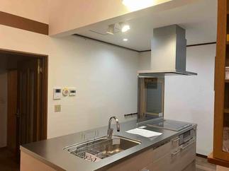 キッチンは動線が不便で、上部の棚の使いづらさを気にされていたので、回遊がしやすいアイランド型キッチンをご提案しています。