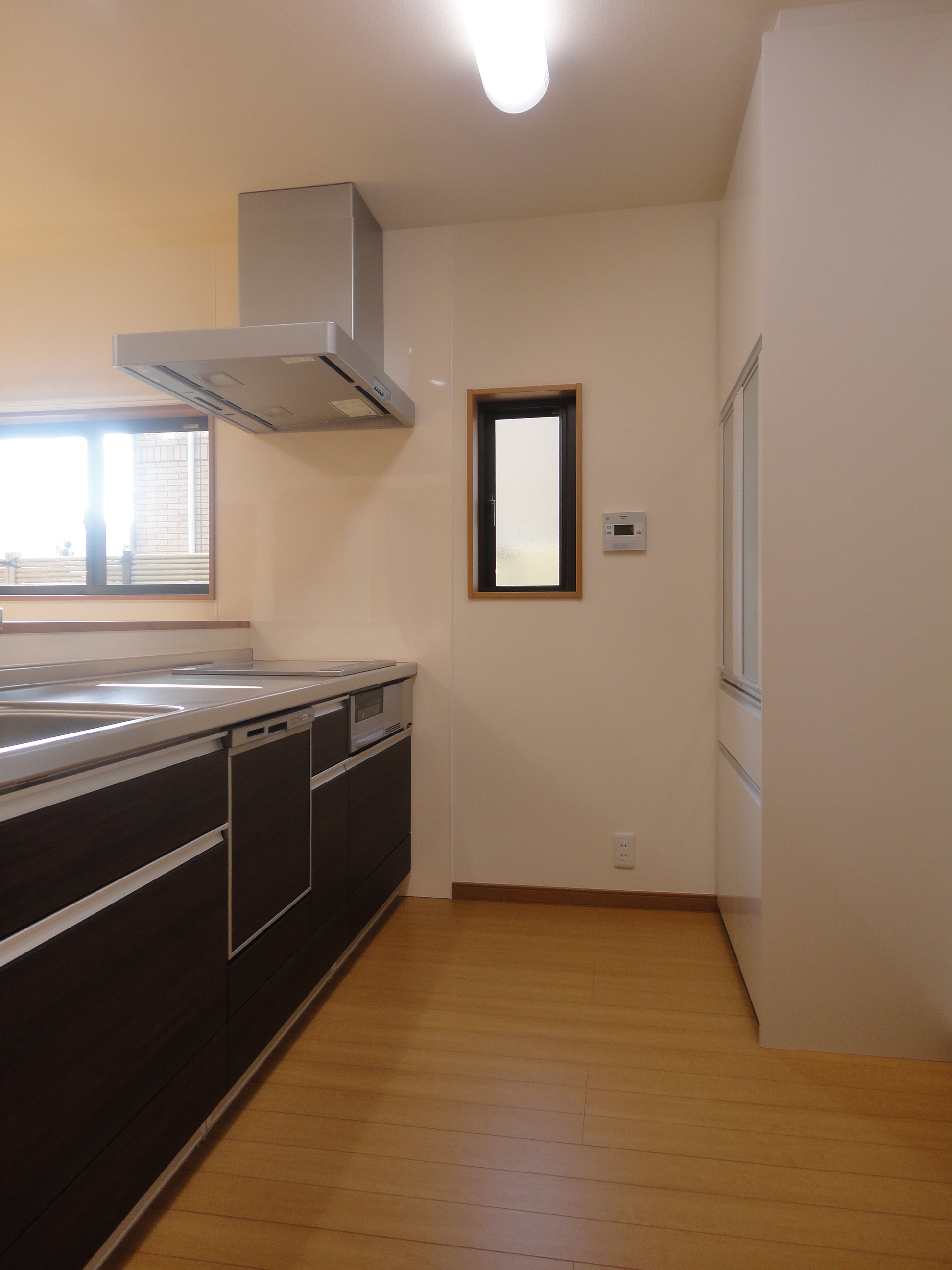キッチンとリビングがそれぞれ独立した間取りをガラッと変えて対面キッチンに。 広々と明るいキッチンになり、家族との会話も弾みます。