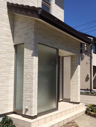 玄関の風当たりが強く、雨風の吹き込みを防ぎたいとのご相談をいただきました。一般的な引違戸の風除室と、間仕切的な風除けの2パターンご提案し、おすすめの風除けタイプをお選びいただきました。