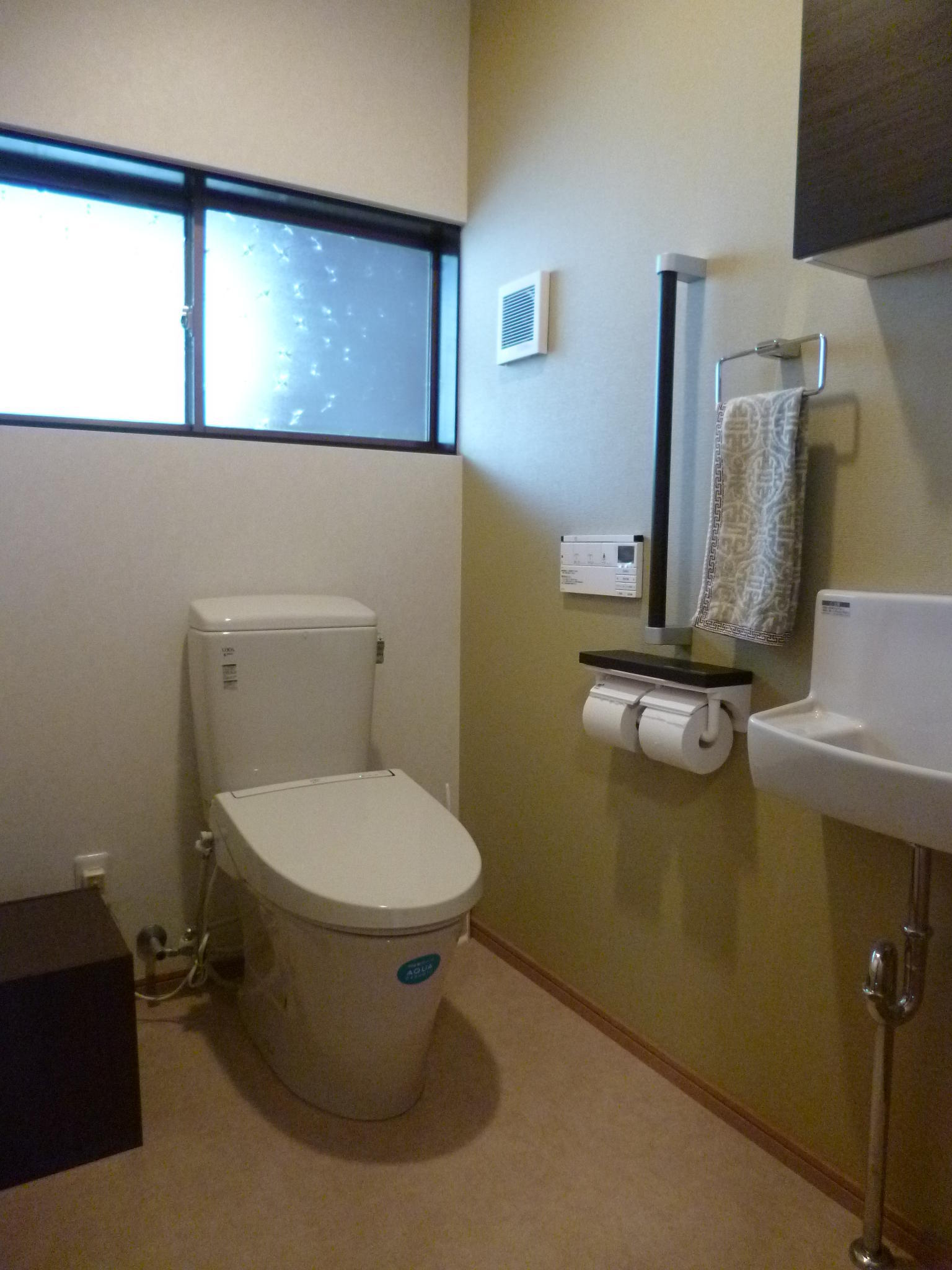 ひとり暮らしのお母さまのために息子さんが提案した、耐震改修と水廻り、窓のリフォーム。トイレや浴室、洗面室は段差をなくし、暖房機と手摺りを設置しました。お部屋や広縁の窓も取替え、断熱向上と結露防止で健康に暮らせるようになりました。