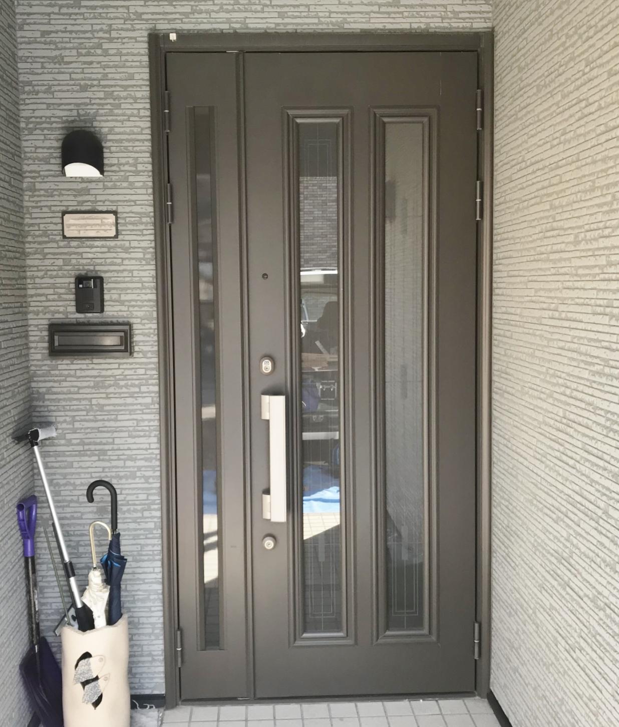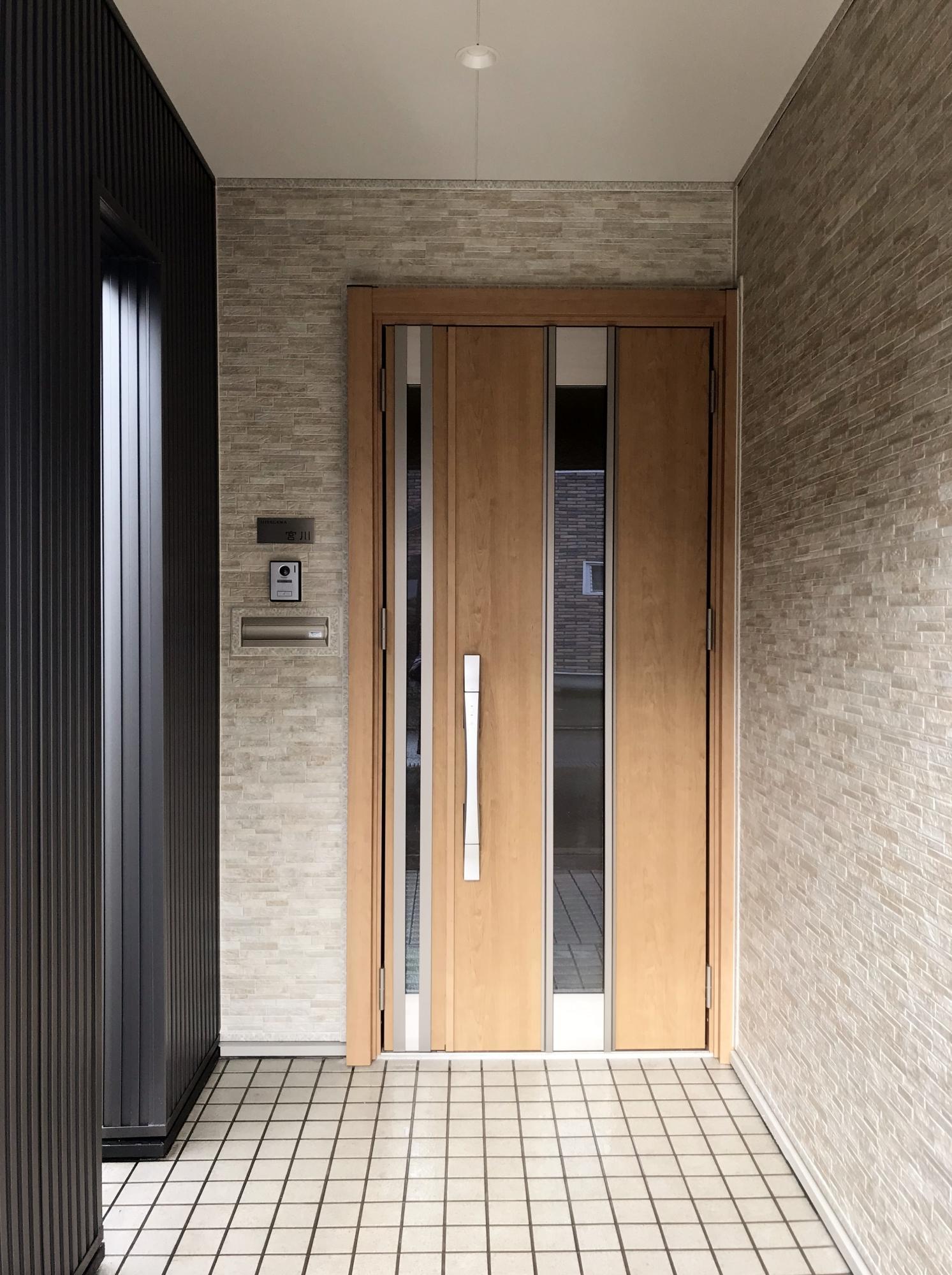 外壁材「Danサイディング」を使い外壁をリフォームしました。 断熱と防音性能がアップして、外観もシックで落ち着いた印象になりました。外壁のリフォームと同時に、玄関ドアも取替えました。リフォーム玄関ドア「リシェント」の最新機能で快適性と防犯性もアップしました。
