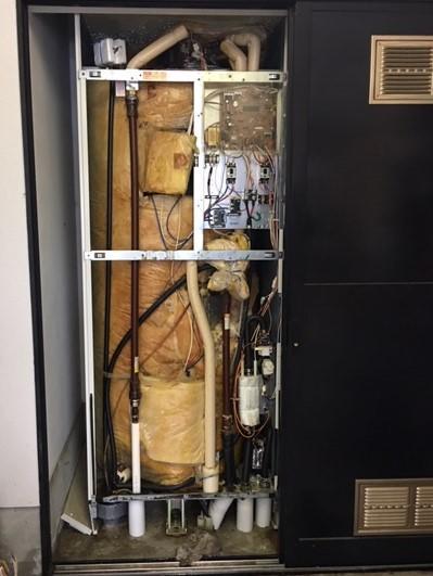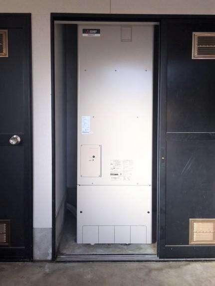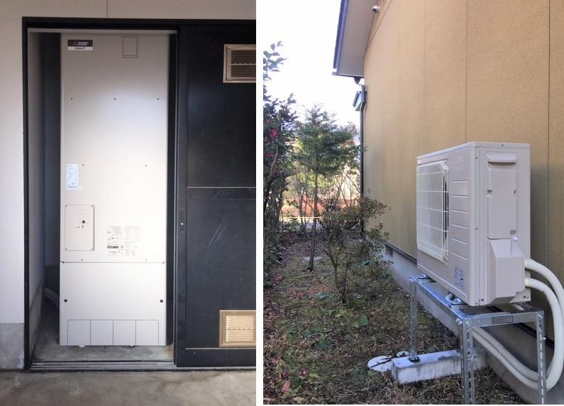「新築時から使っている電気温水器から水漏れして動かない」とのご連絡をいただき、メーカーさんと共に訪問。中を開けてみると経年劣化で水漏れ、基盤の交換が必要でしたが廃番で修理不可とのこと。そこで、省エネで電気代がお得なエコキュートに交換させていただきました。※北陸電力さんでは、従来型電気温水器とエコキュート(高効率給湯器)の電気料金比較ができます。