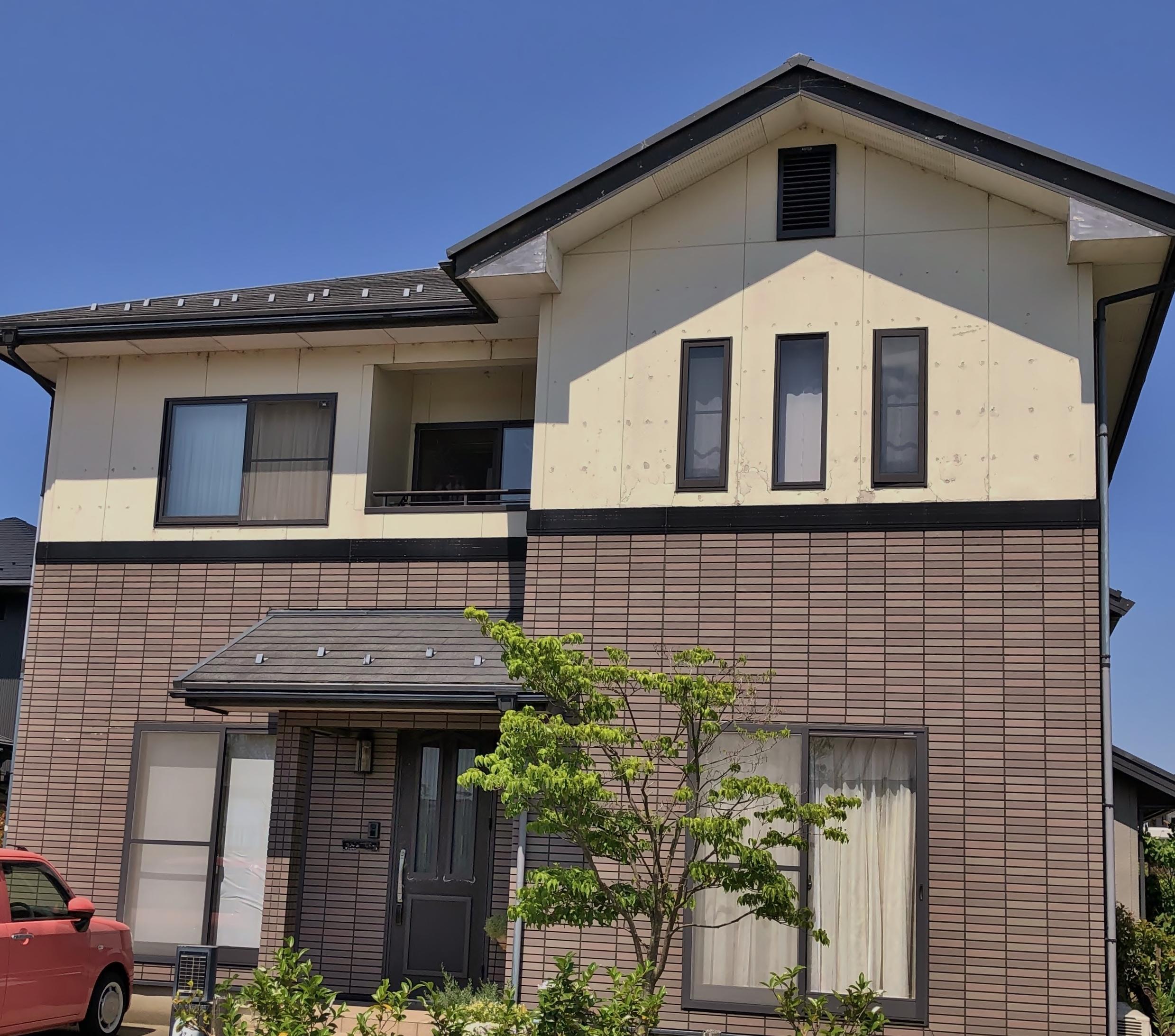 「築18年、外壁の傷みが気になっている」とご相談をうけました。 S様のご希望に添えるように、何度も打合せをし、メンテナンスがしやすい金属サイディングの張り替えをご提案しました。 とても素敵な外観になり、お家がグレードアップしました。
