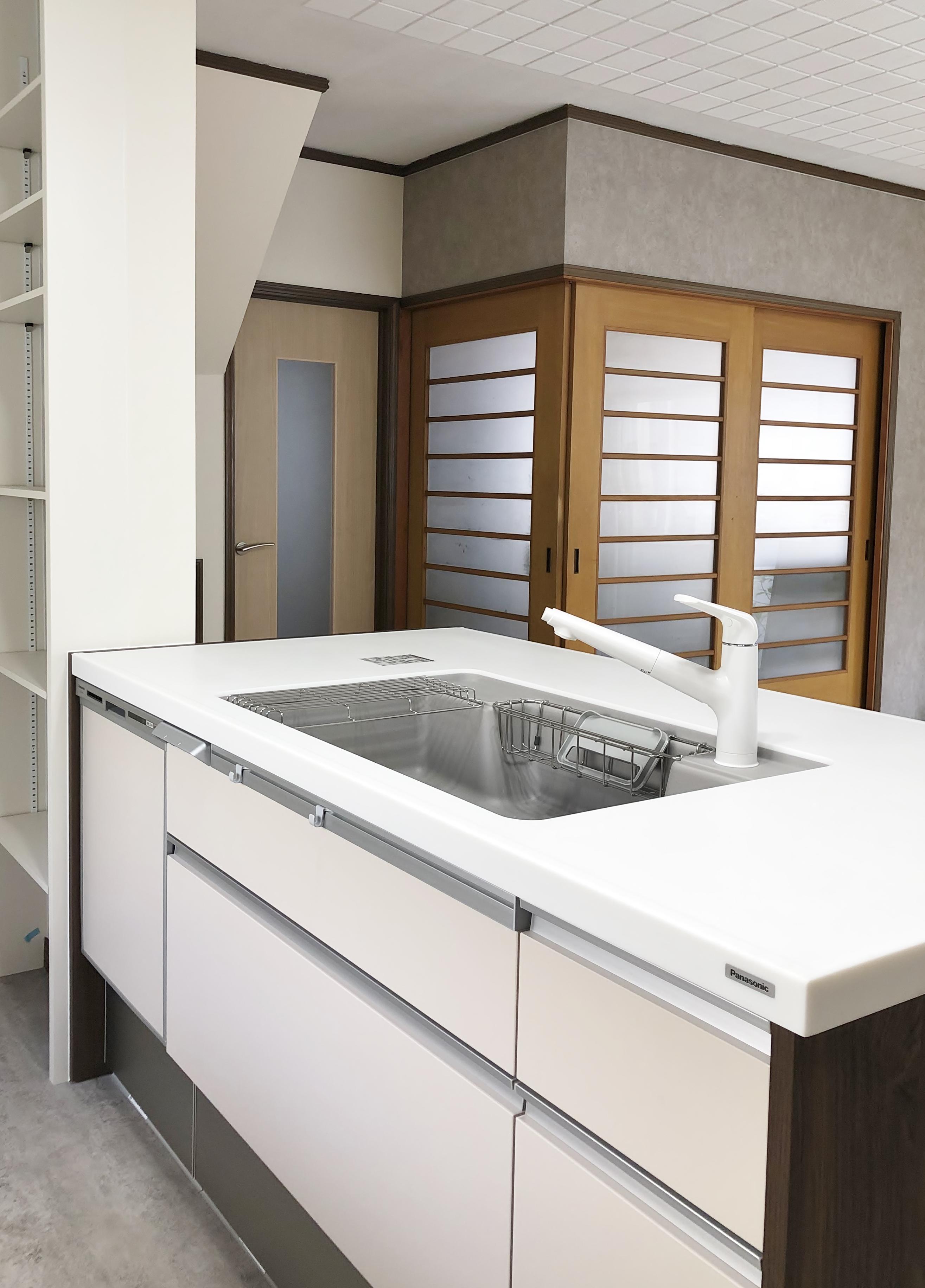 壁付キッチンを、リビングに面した明るい対面キッチンに。 シンクとコンロが分かれたセパレートタイプのキッチンは、家事のしやすさはもちろん、大人数でも楽しく料理できます。毎日使う場所だからこそ、デザインも機能も動線もトコトンこだわった個性的な空間になりました。