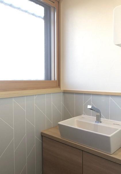 小便器があった場所に手洗いを移動し、床段差も解消。 お嬢さんが選んでくださった北欧風の壁紙が映える、さわやかなトイレになりました♪ K様、いつもありがとうございます!