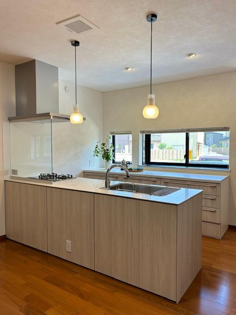 「新築時にキッチンを北側にしてしまい、暗い感じになり後悔している」というお話を伺い、明るく開放的なキッチンをご提案しました。
