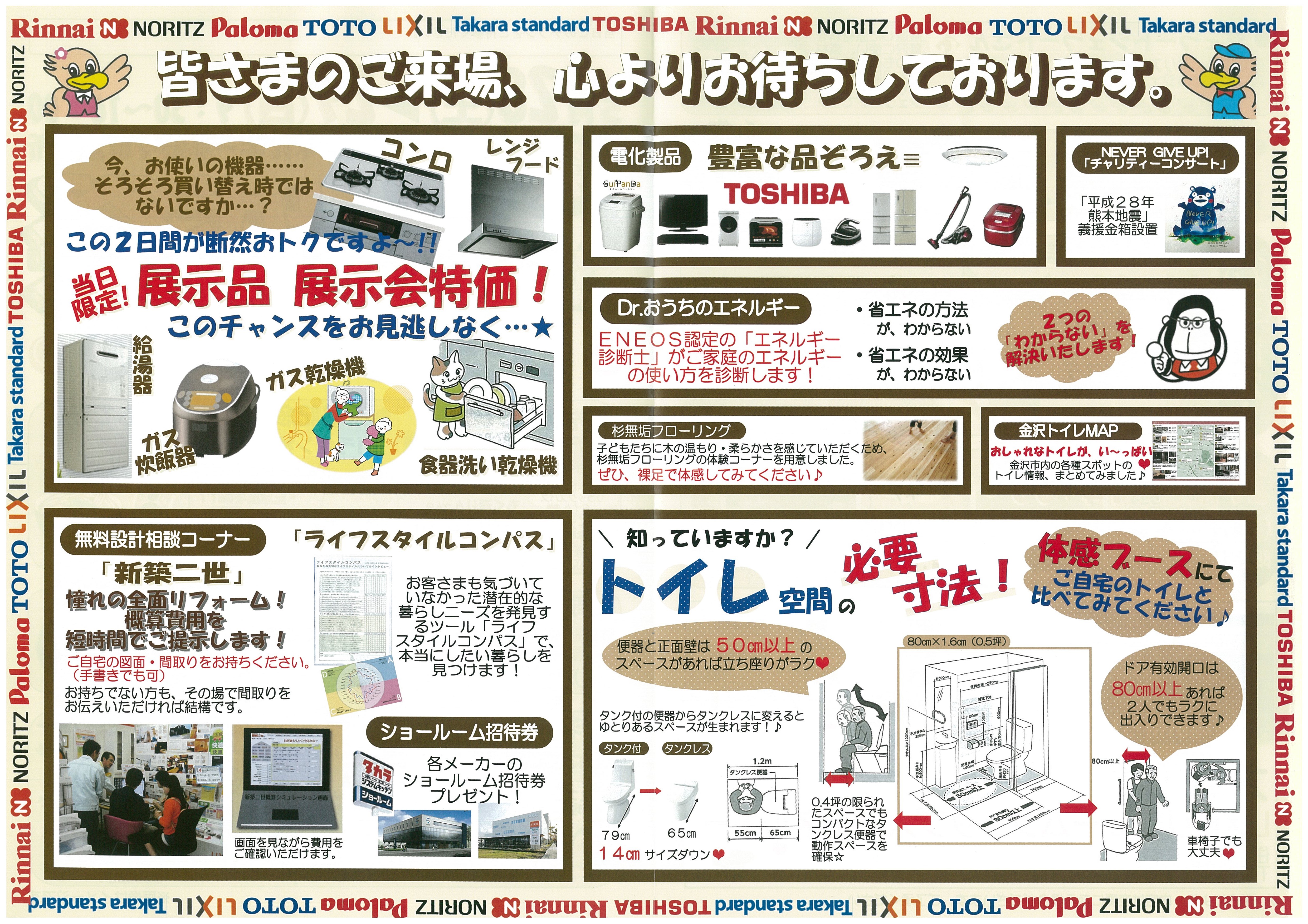 ガス機器、住宅設備、電化製品展示コーナーや