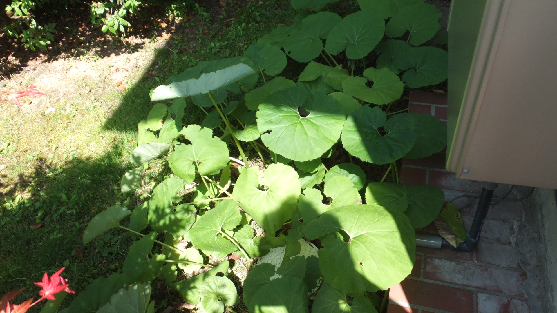 足元には植えたわけではないがフキがちょうど食べごろのようで毎年この時期、我が家の食卓に載る一品です。