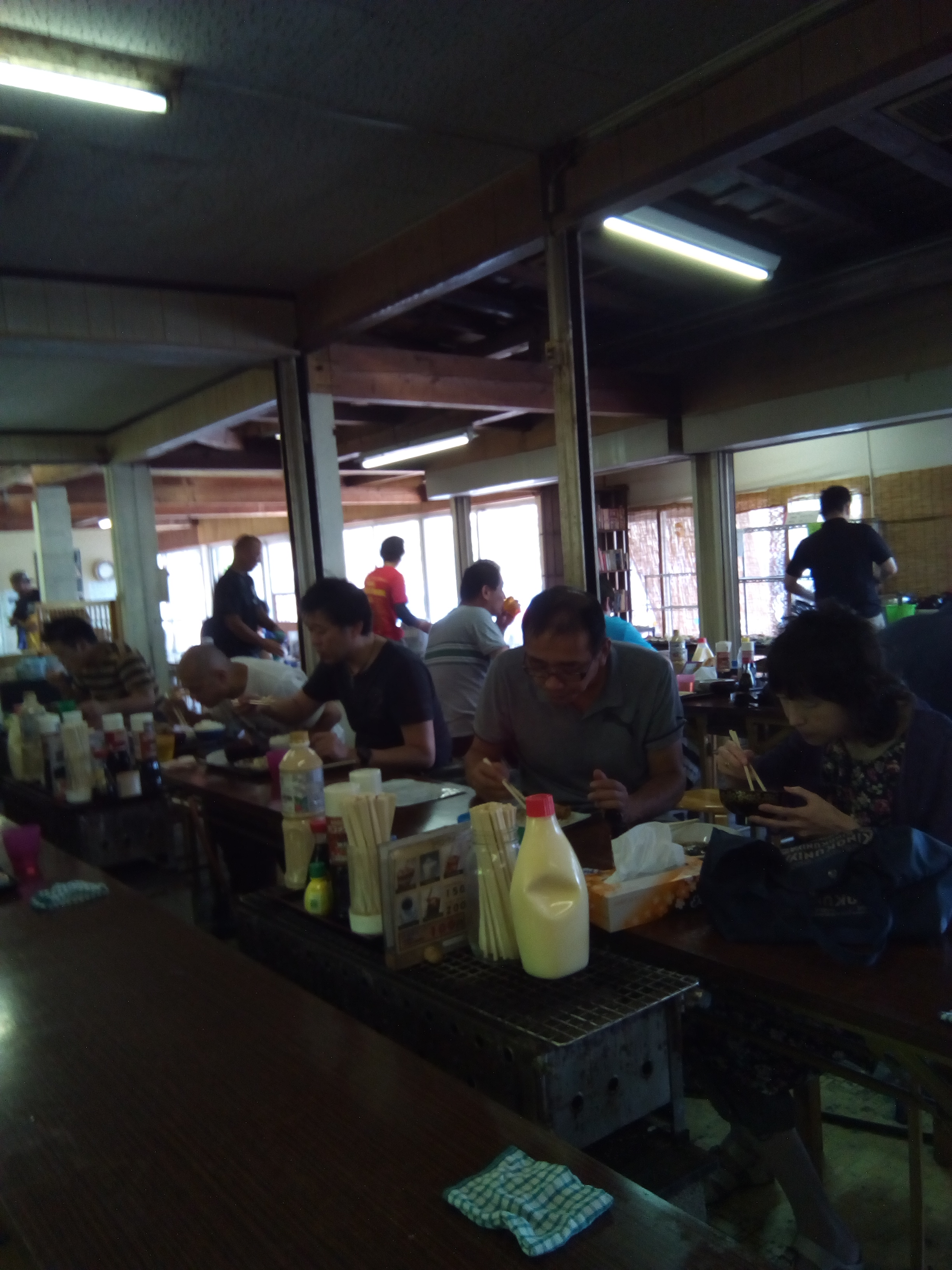 私たちは後者を選び暫く待っていると、前にいた夫婦が私達の様子をみて勝手がわかないのだろうと察し「ごはんとみそ汁と小鉢3種類はセルフですよ」と伝えられる。