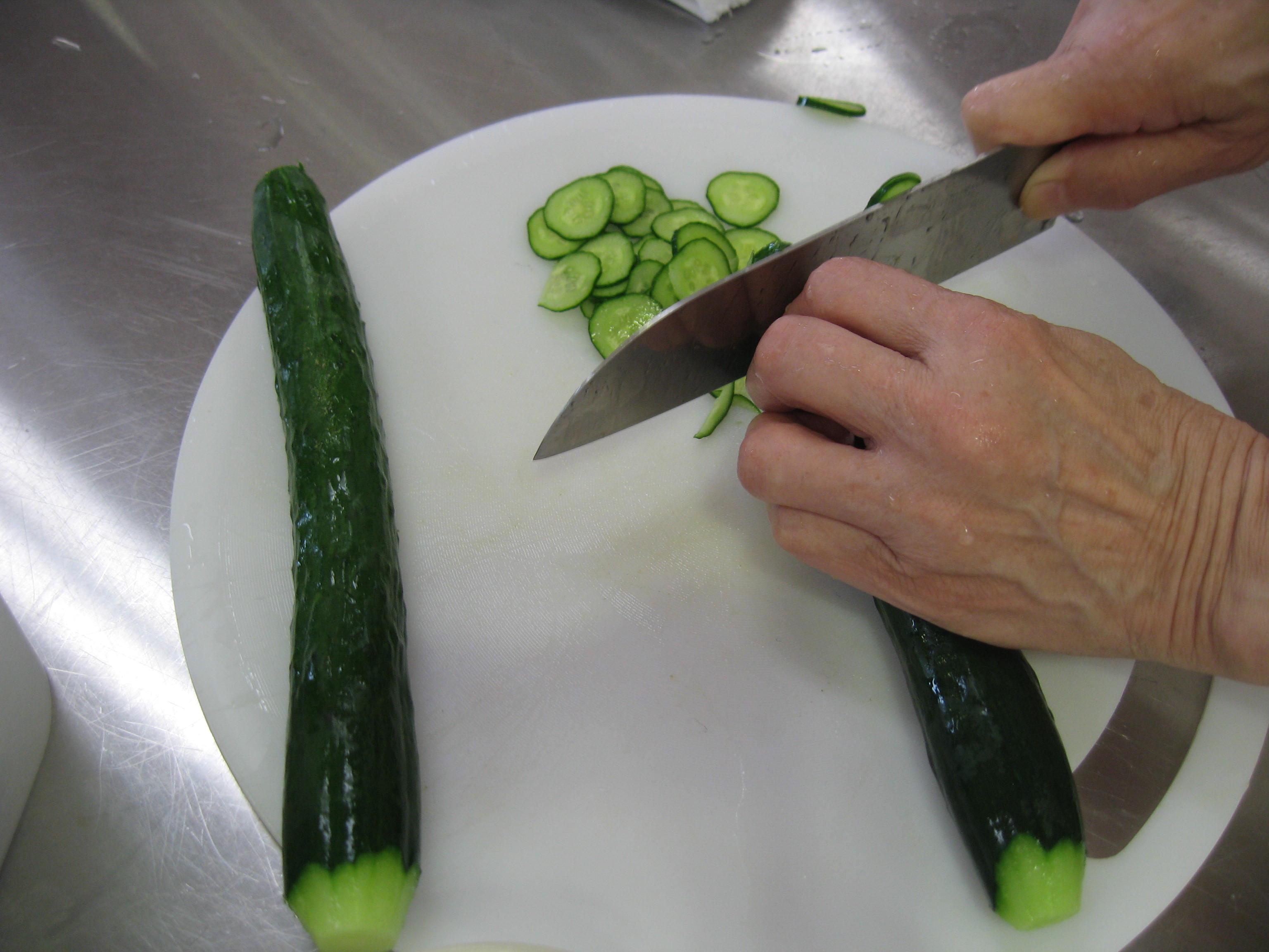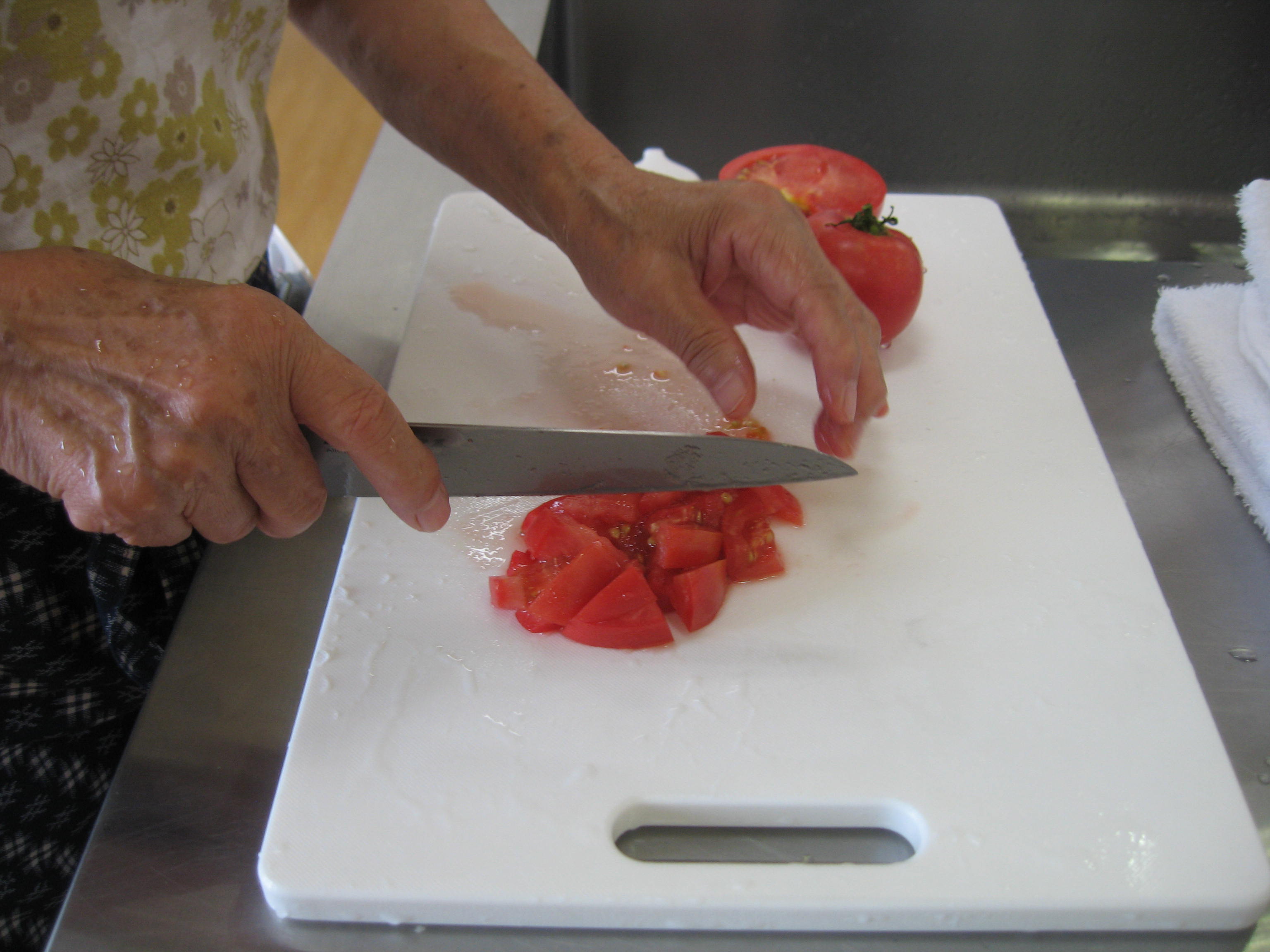 冷水と、先ほどのトマト・きゅうりを入れ、さらに