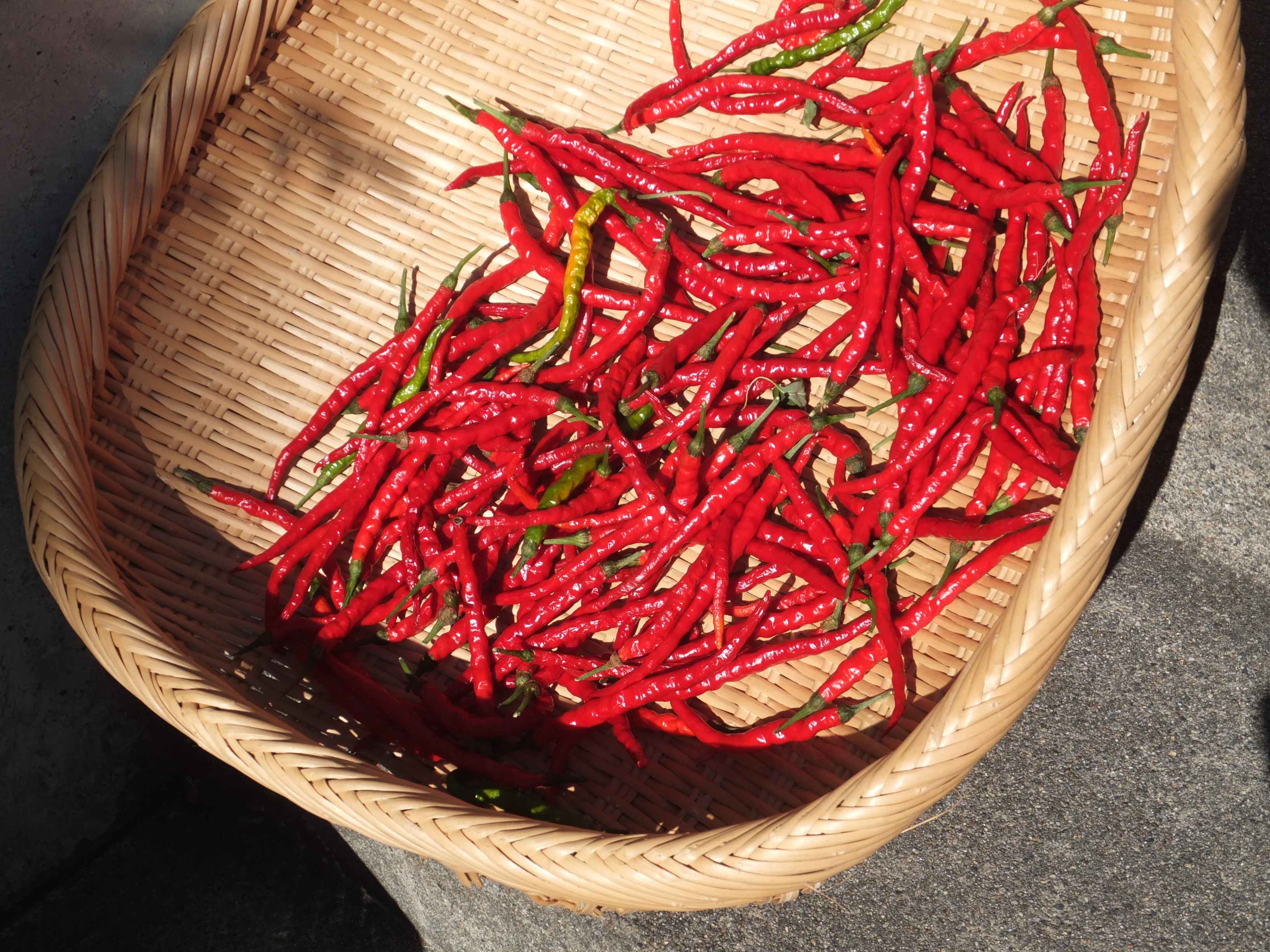 先日も天気の良い日、ある町を歩いていたところ唐辛子の赤が目にとまりました。