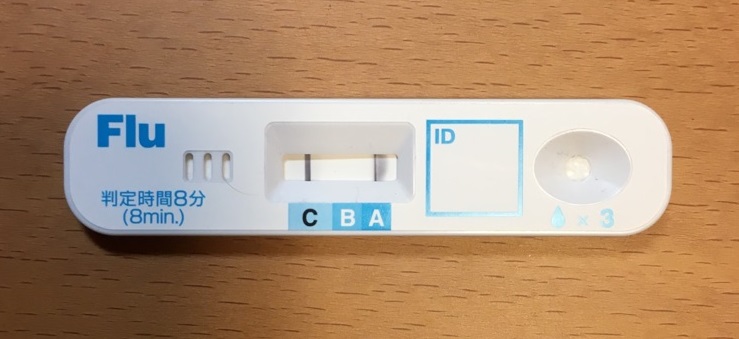 ↑診断判定キット(Cはコントロール)。鼻奥の検査は辛かった・・