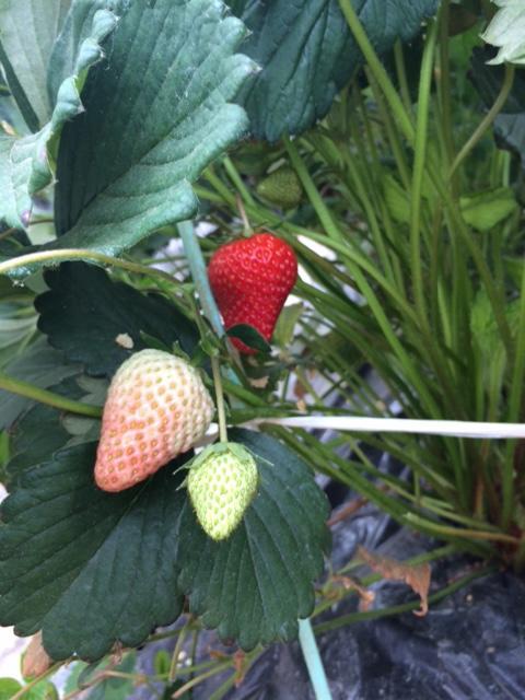 『すみれのほっぺ』という品種のいちごです。まだ白いものもいくつかありましたが、赤くなったものはとてもおいしかったです。