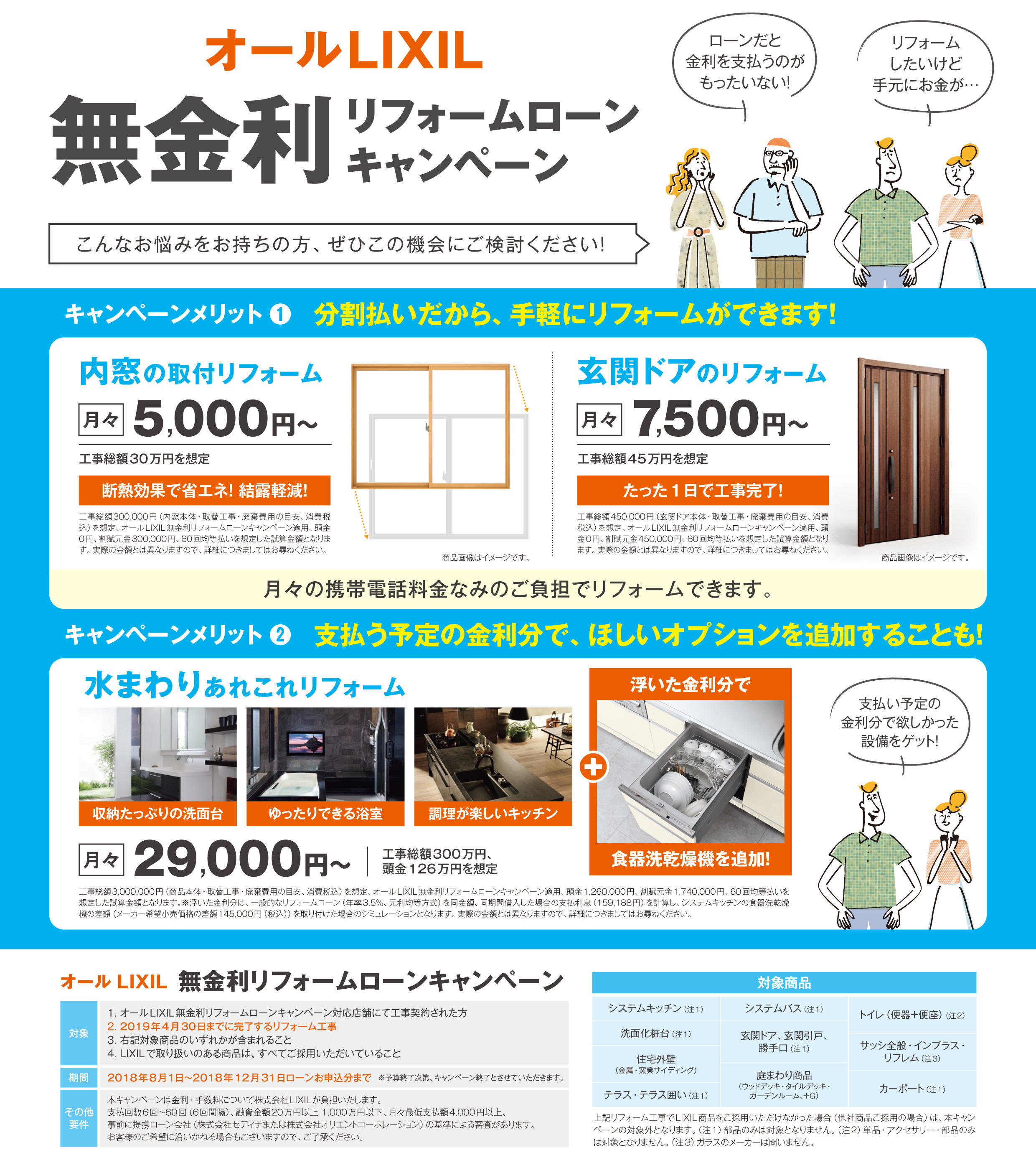 さて、昨年に引き続き、今年も『オールLIXIL無金利ローンキャンペーン』が