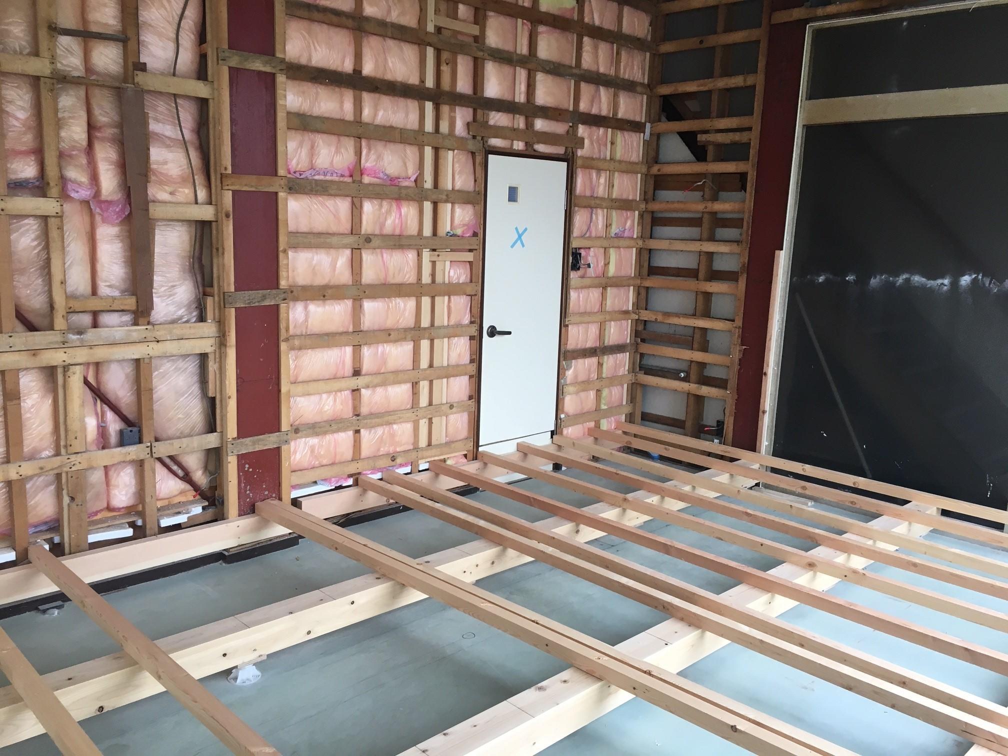 解体2日目です。施主様が住まいをされながらの工事ですので養生区画壁がしてあります。