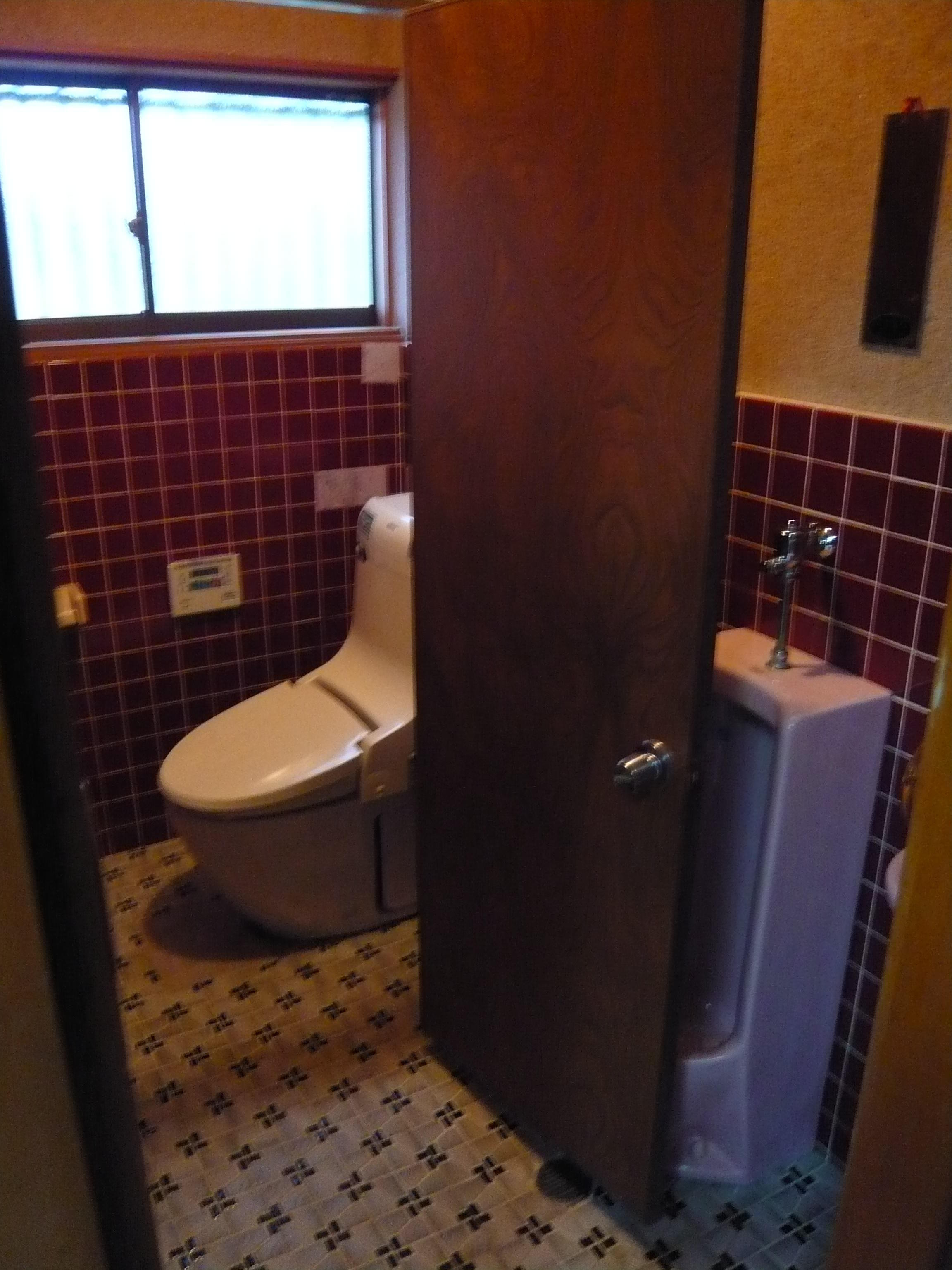 ↑既存のトイレは、洋便器と小便器があり壁天井ともタイルでした。