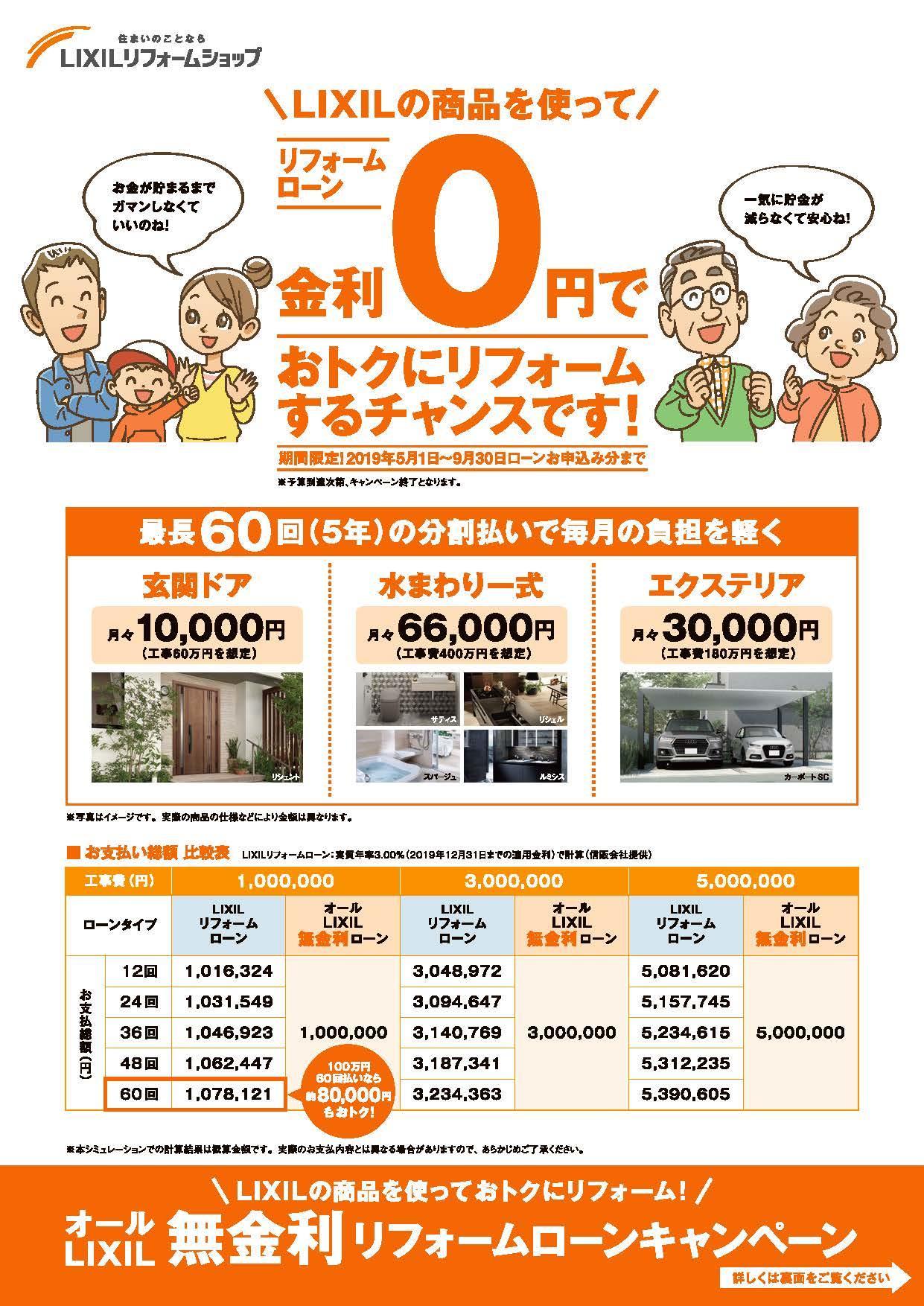 さて、今月から『オールLIXIL無金利リフォームローンキャンペーン』の