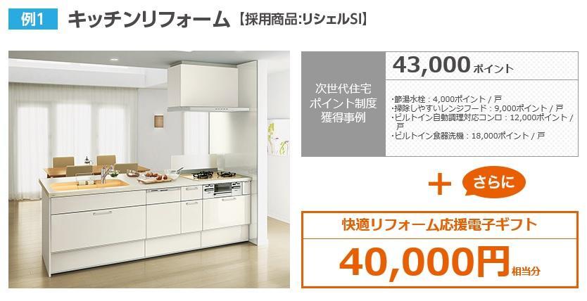 例えばキッチンのリシェルを購入すると40,000円相当分が電子マネーにて還元されます。