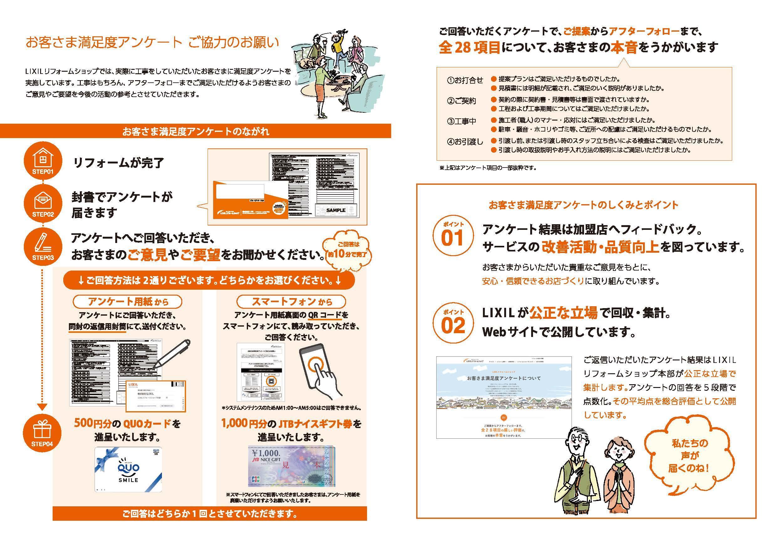 当店では、工事をしていただいたお客様に『お客様満足度アンケート』を実施しています。