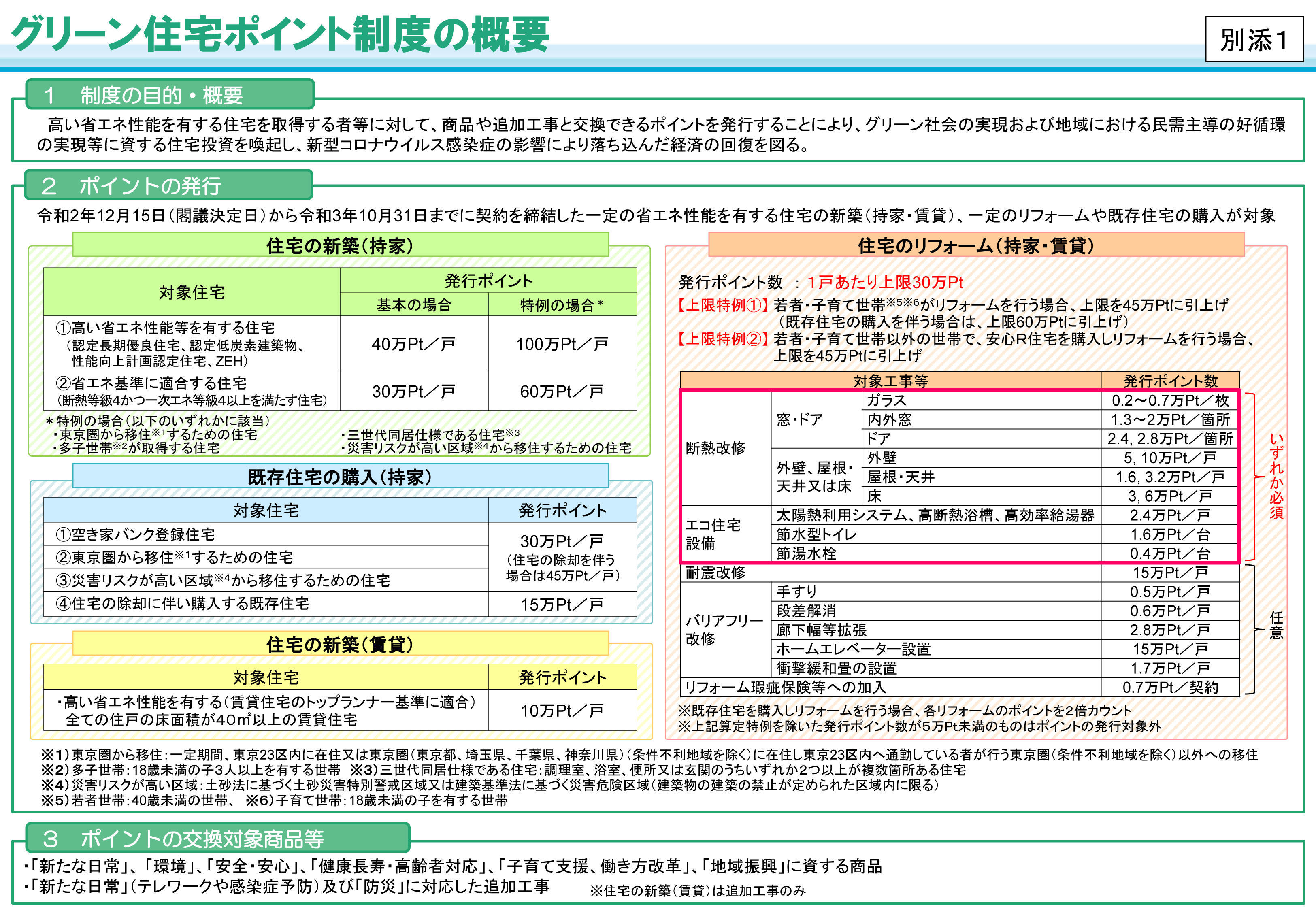 昨年から今年の8月まで実施されていた「次世代住宅ポイント制度」と同じような制度のようですね。