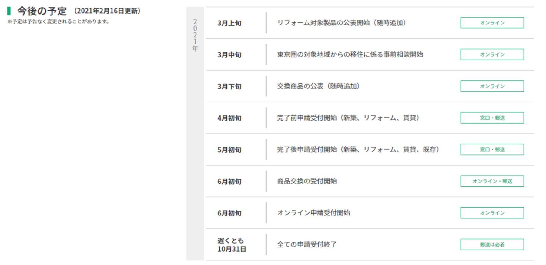 1,000万円以下のリフォーム工事の場合は5月初旬から申請受付開始の予定です。