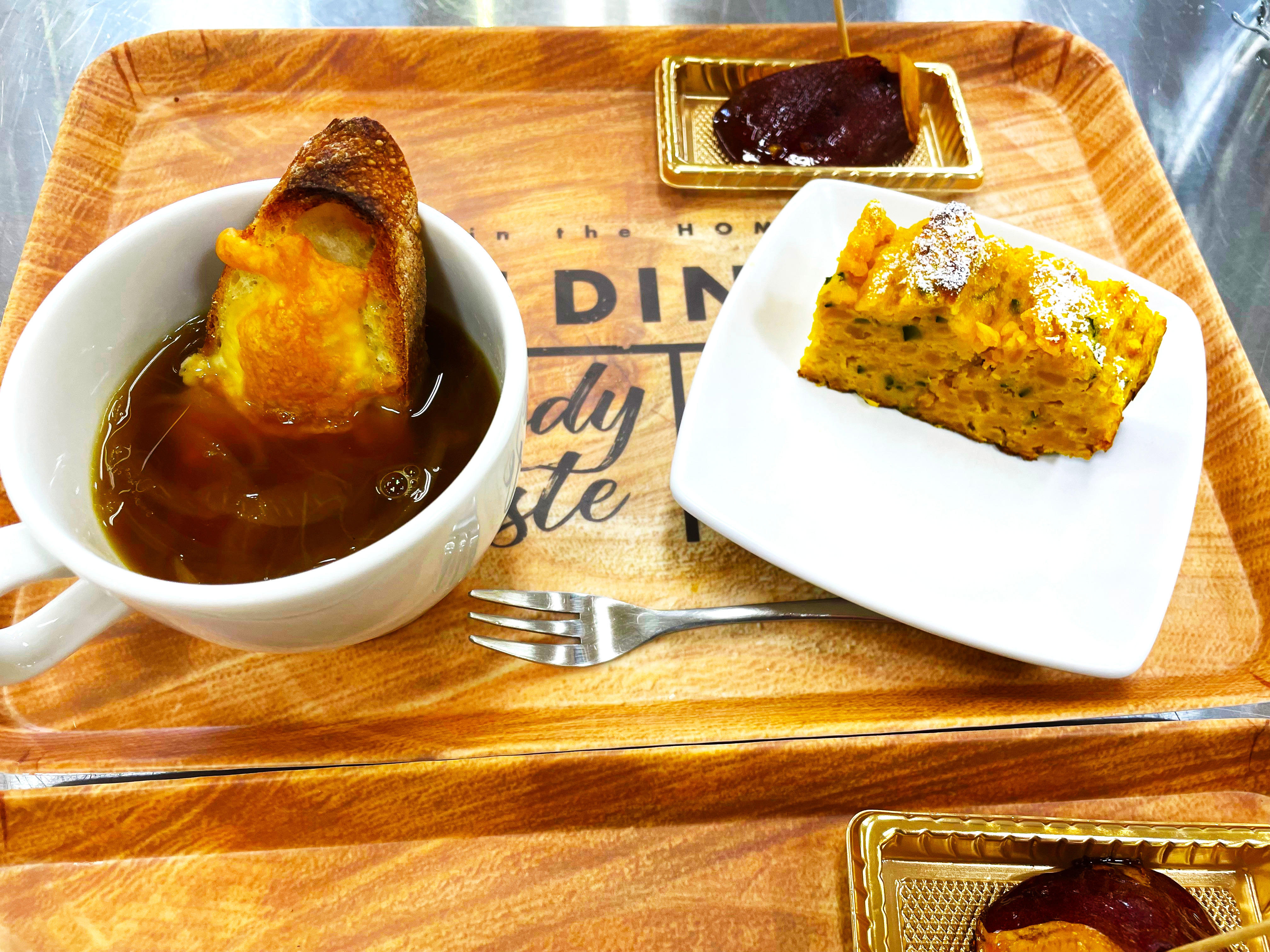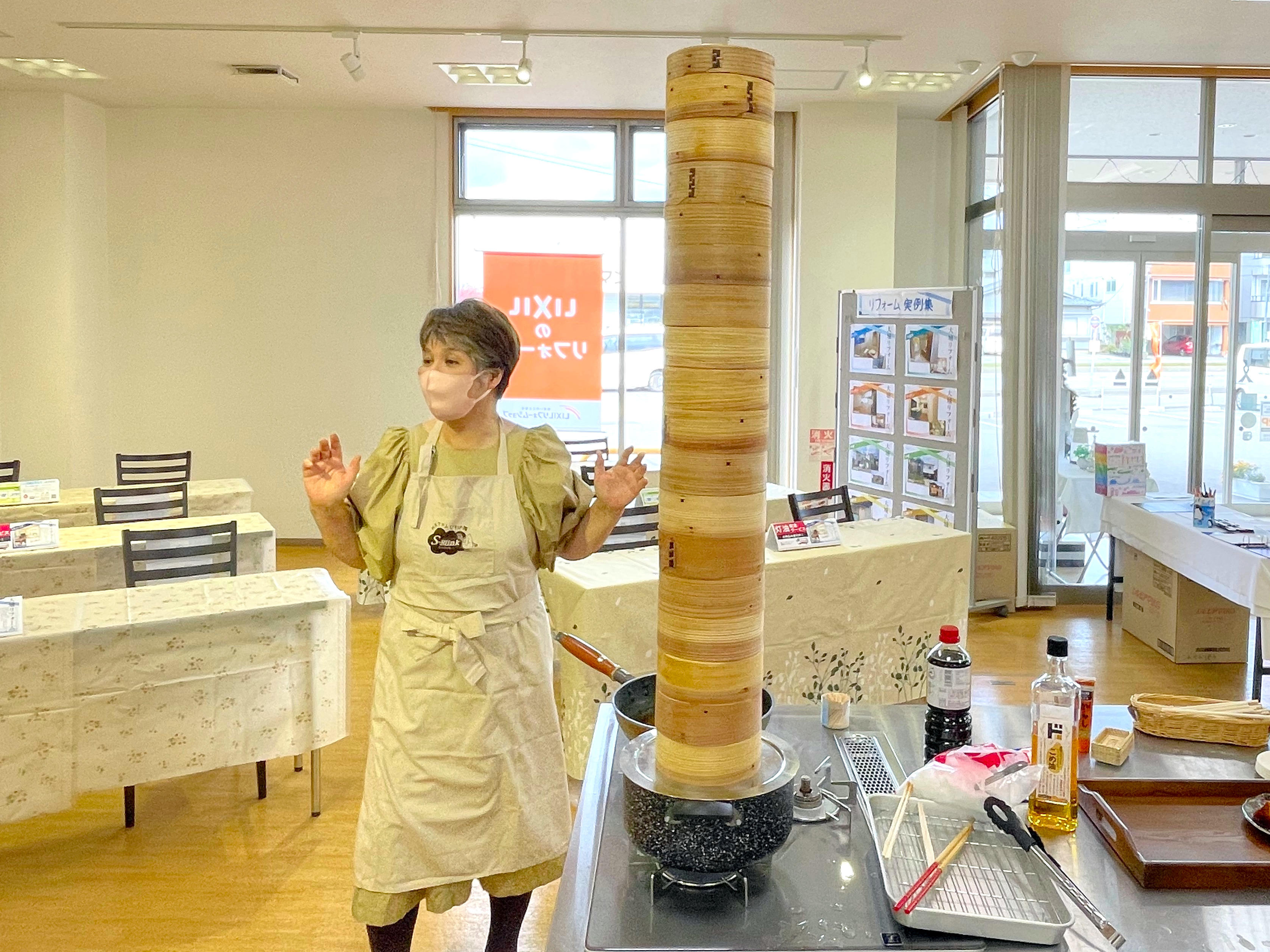 当社料理教室でいつも講師を務めてくださっている今井先生をお呼びして、午前中はしゅうまい・おこわ、午後からはかぼちゃのケーキ・オニオンスープをふるまっていただきました。