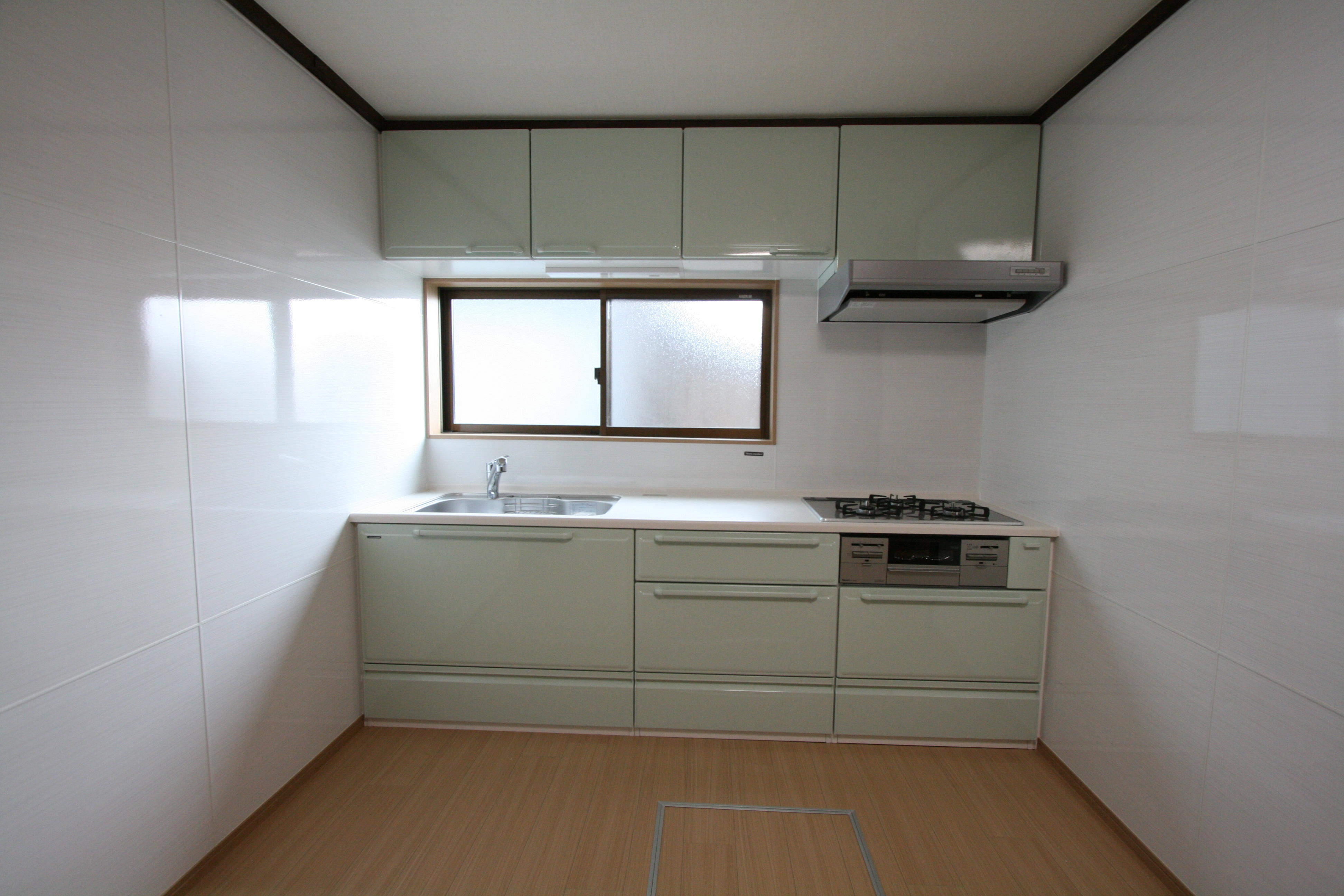 この家には、猫が十数匹飼われていて壁がツメ跡でガリガリになっていました。今度は、ツメが立たないように、壁をキッチンパネルで覆いました。これで、キッチンが衛生的に使えるようになるりました。
