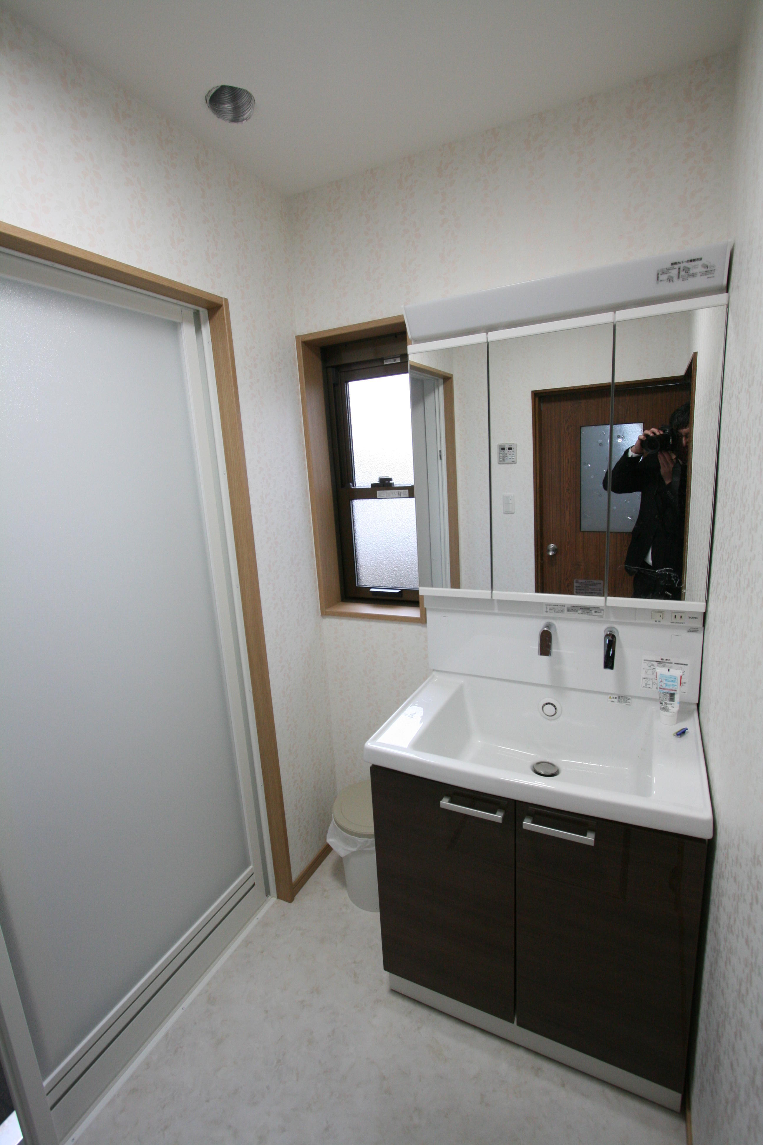 以前は、洗面化粧台の向きが狭い方向に向いていたのですが、方向を変えることにより広々とつかえるようになりました。