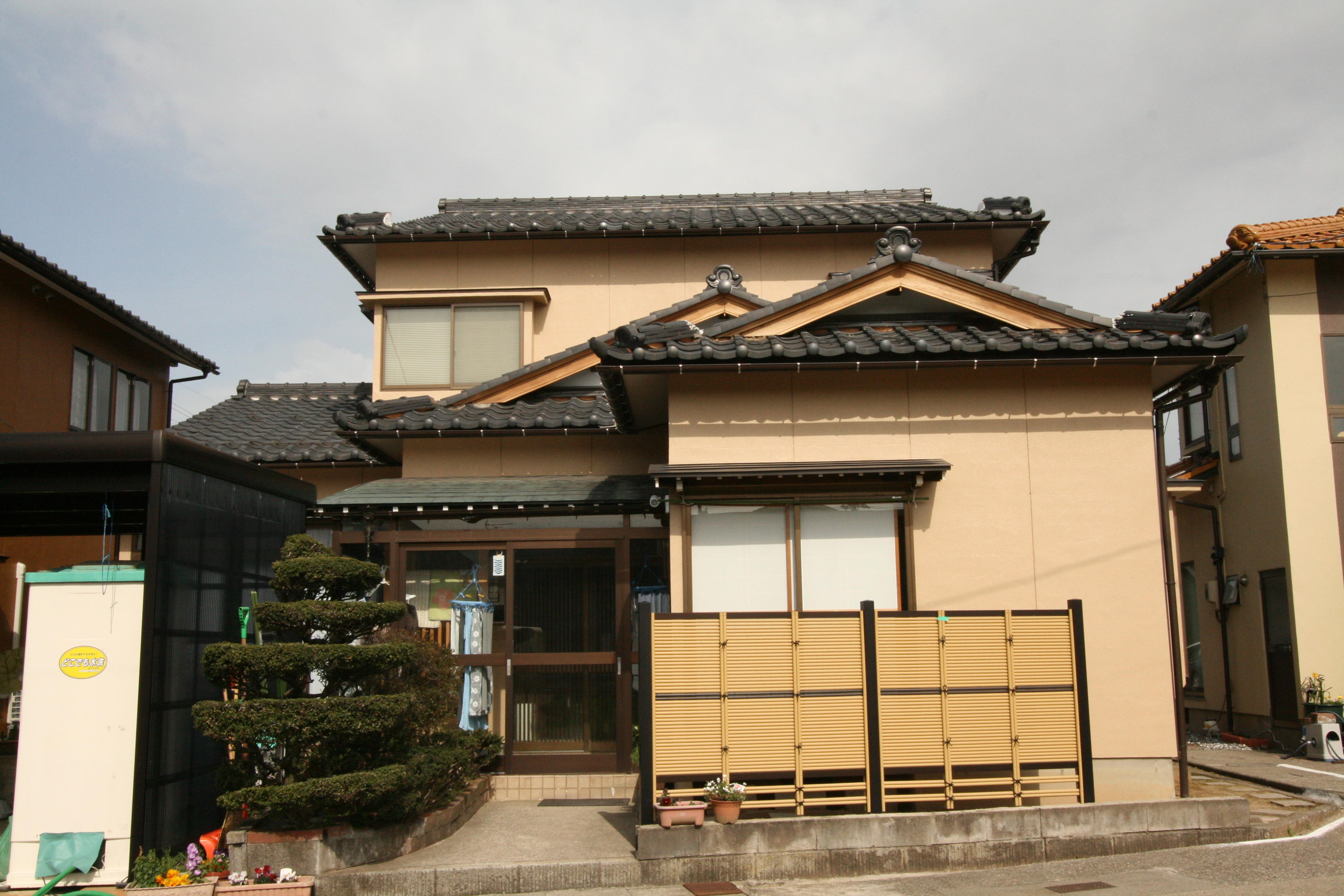 純和風住宅の外装をリフォームしました。モルタルリシン吹付の外壁を全て弾性アクリルシリコン塗装でローラー塗としました。