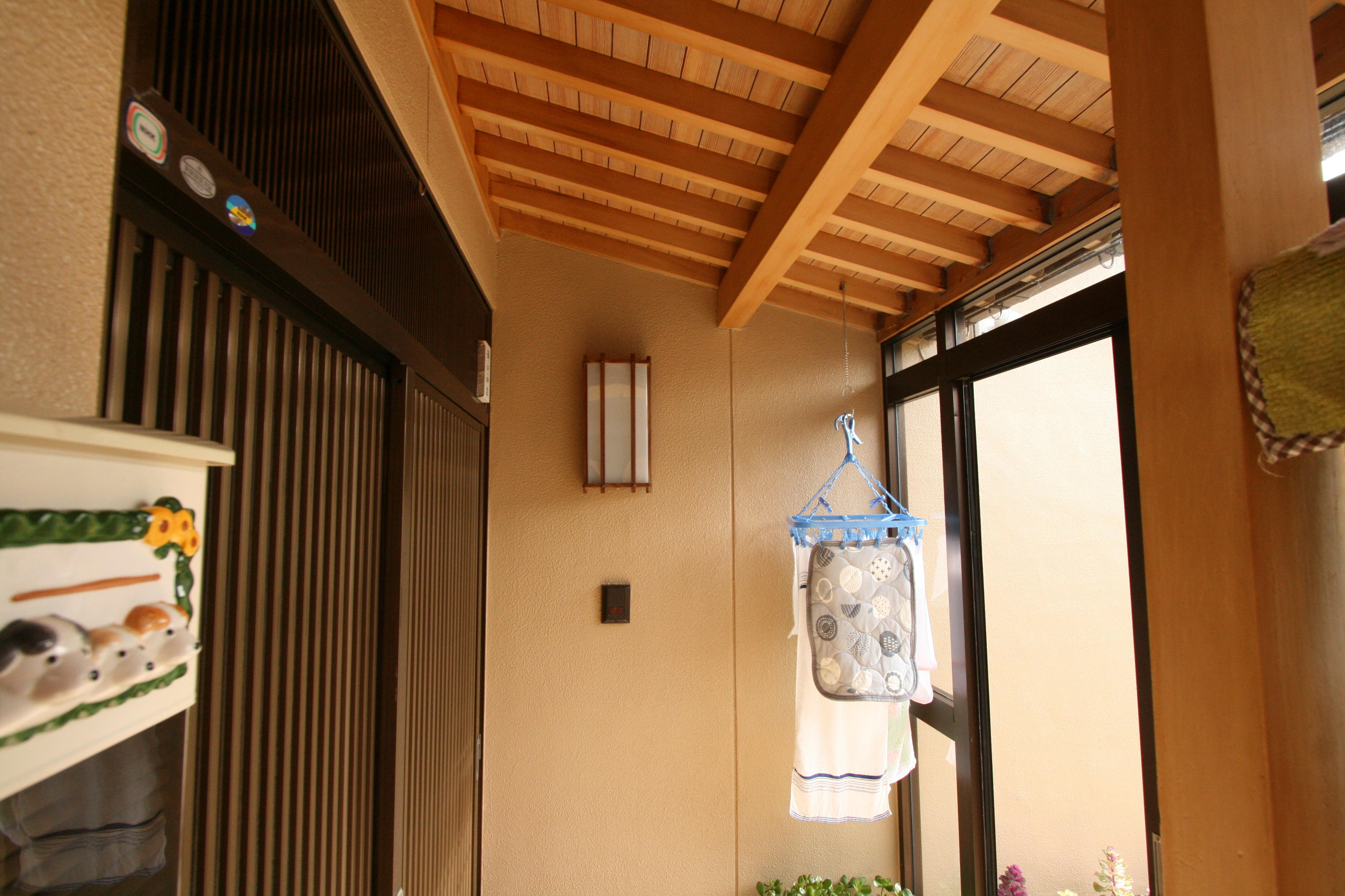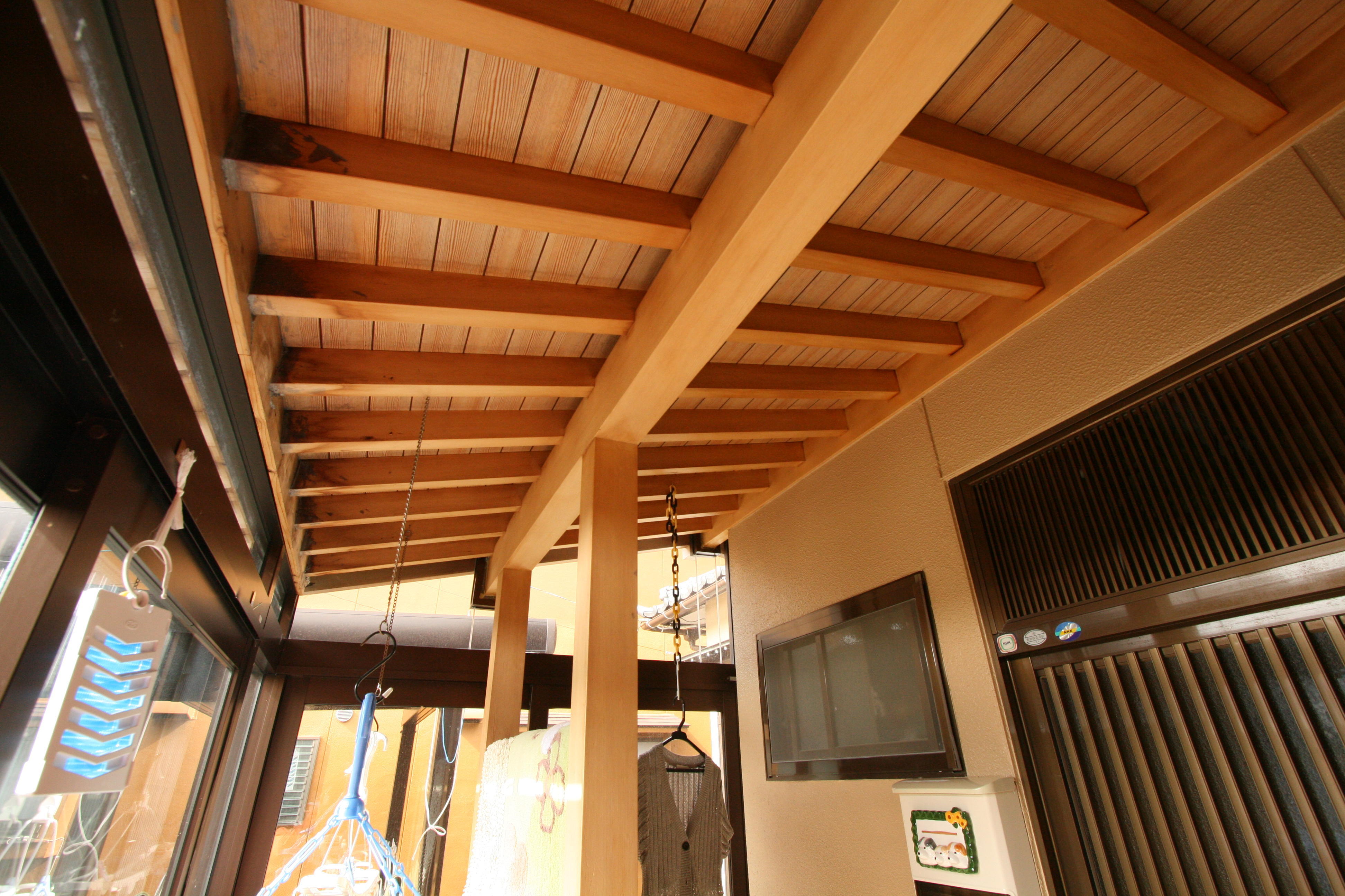 元々、新築時から雨漏りがひどかったらしく、雨漏りはもうこりごりという事で、防水効果のある弾性アクリルシリコン塗装としました。軒樋も経年劣化から前に垂れて来ており、樋は総交換で受け金具も積雪対策でピッチを細かくしました。外装の入母屋の破風板は米草が使われていましたが、カビが繁殖して真っ黒になっていたので、これは「木洗い」を行い木の風合いを取り戻しました。